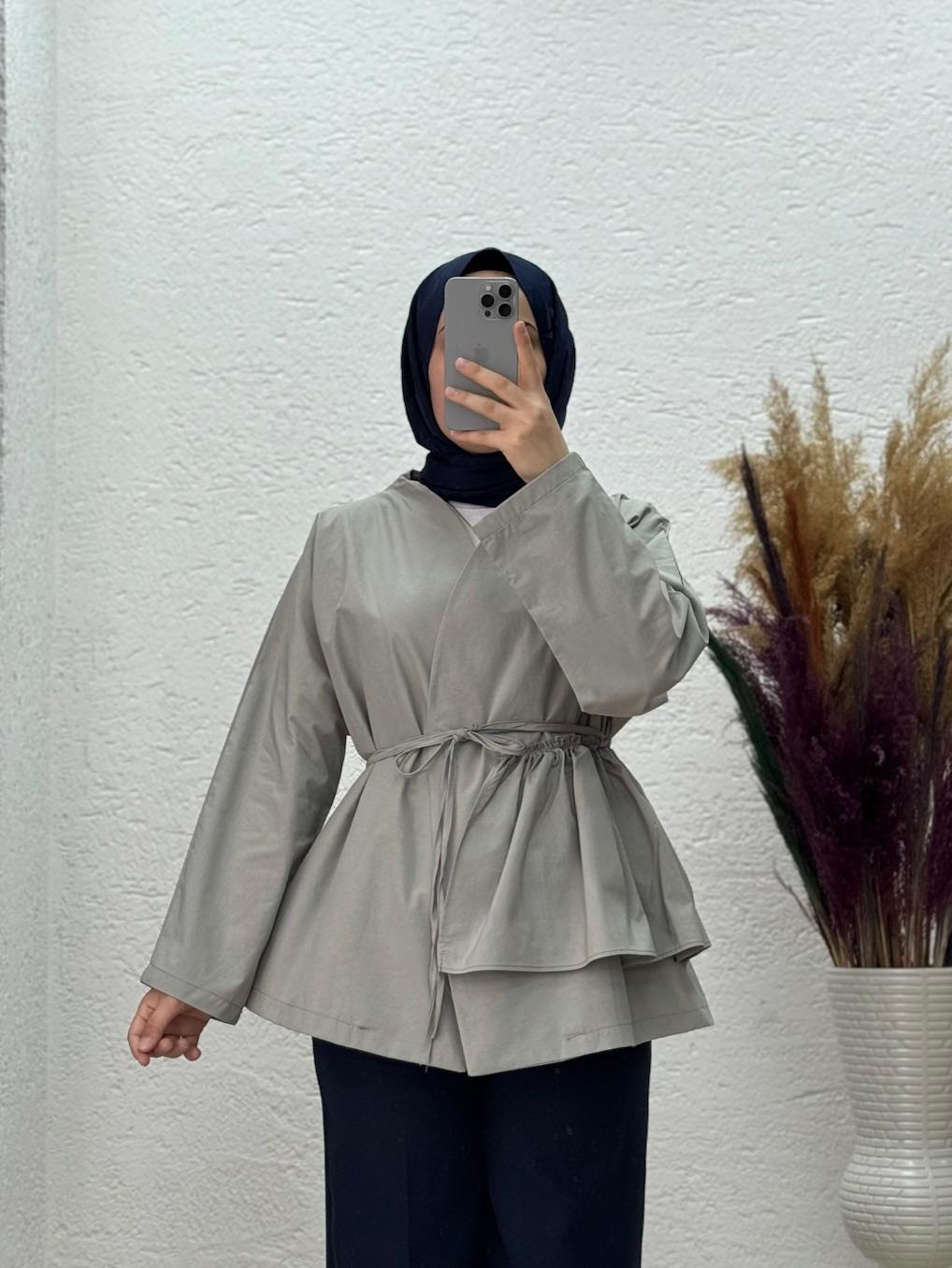 Lununa Yarı Fırfır Detay Poplin Kimono-Çİ535 Mint