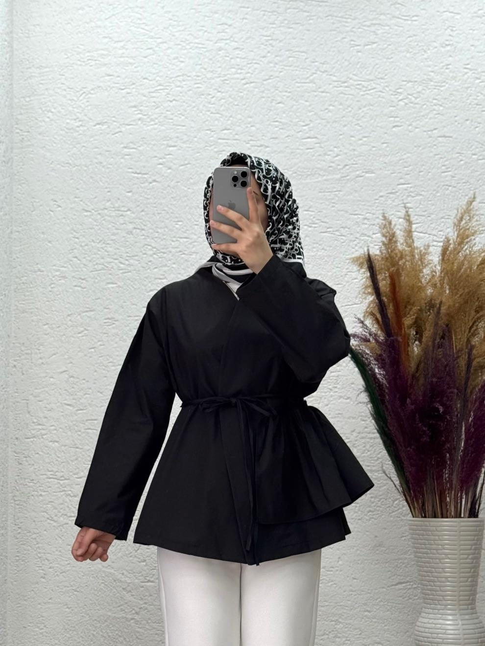 Lununa Yarı Fırfır Detay Poplin Kimono-Çİ535 Siyah