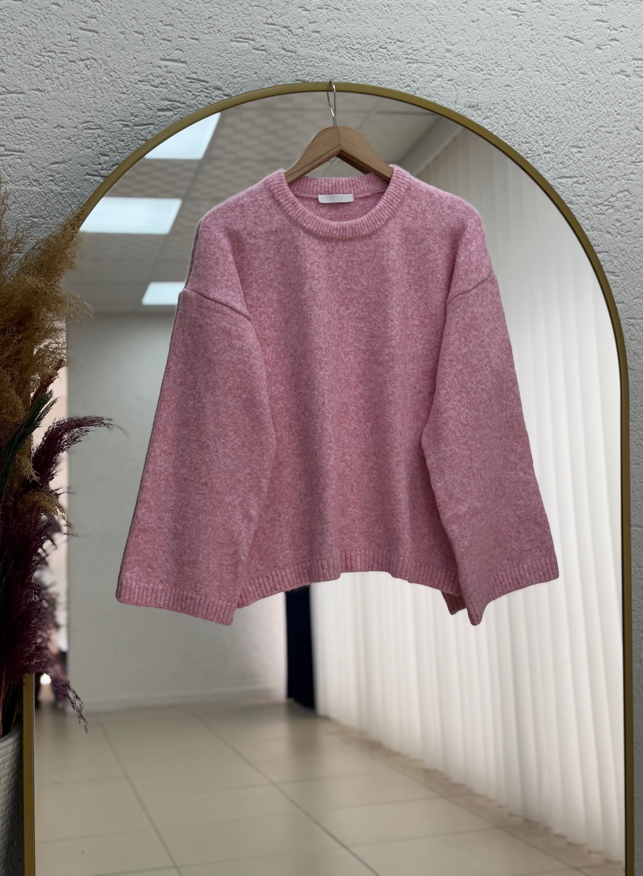 Mahin Altı ve Kol Ucu Fitilli Triko Kazak-Zİ7014 Pembe