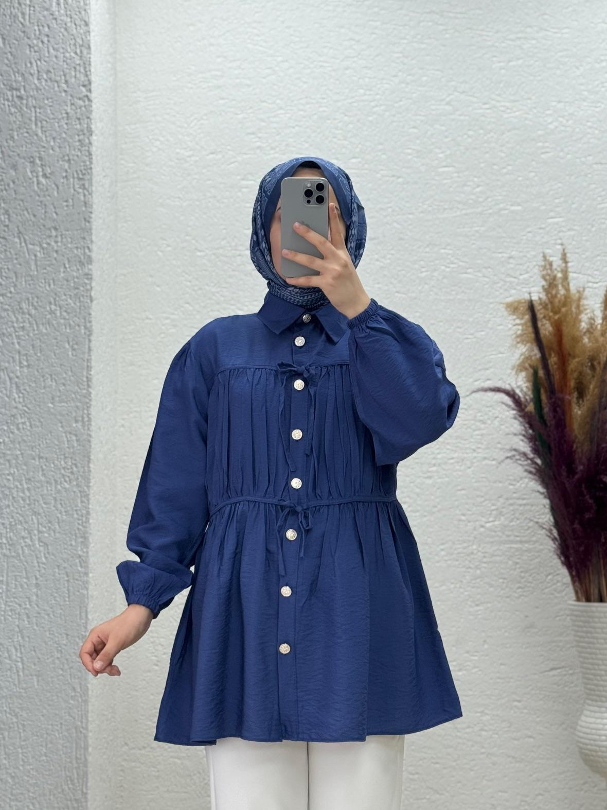 Maresia Katkatlı Biyeli Bağlamalı Gömlek-ZN7802 Lacivert