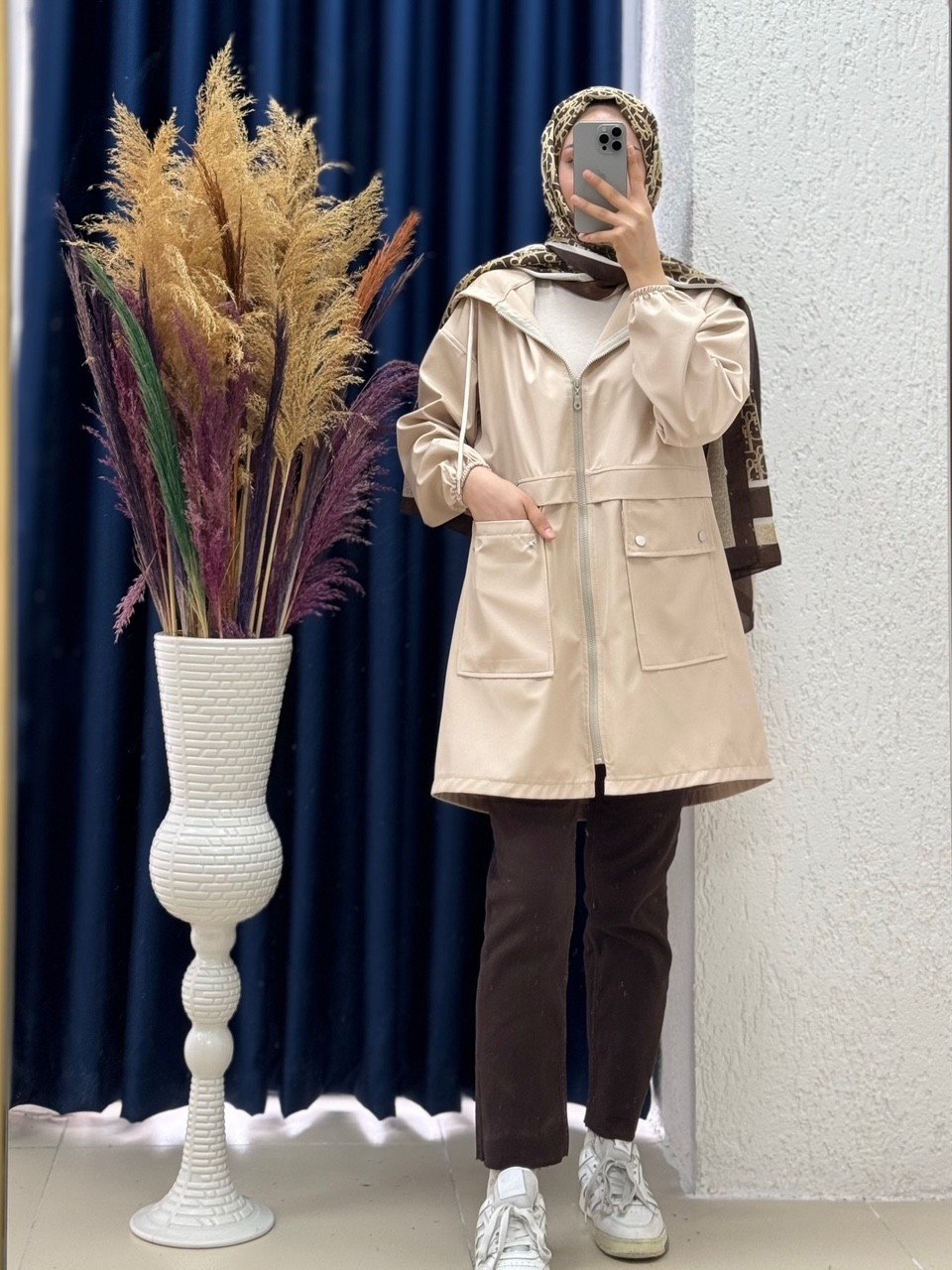 Mariana Cepleri Çıtçıtlı Fermuarlı Kapşonlu Bondit Trenç-ZN1438 Taş