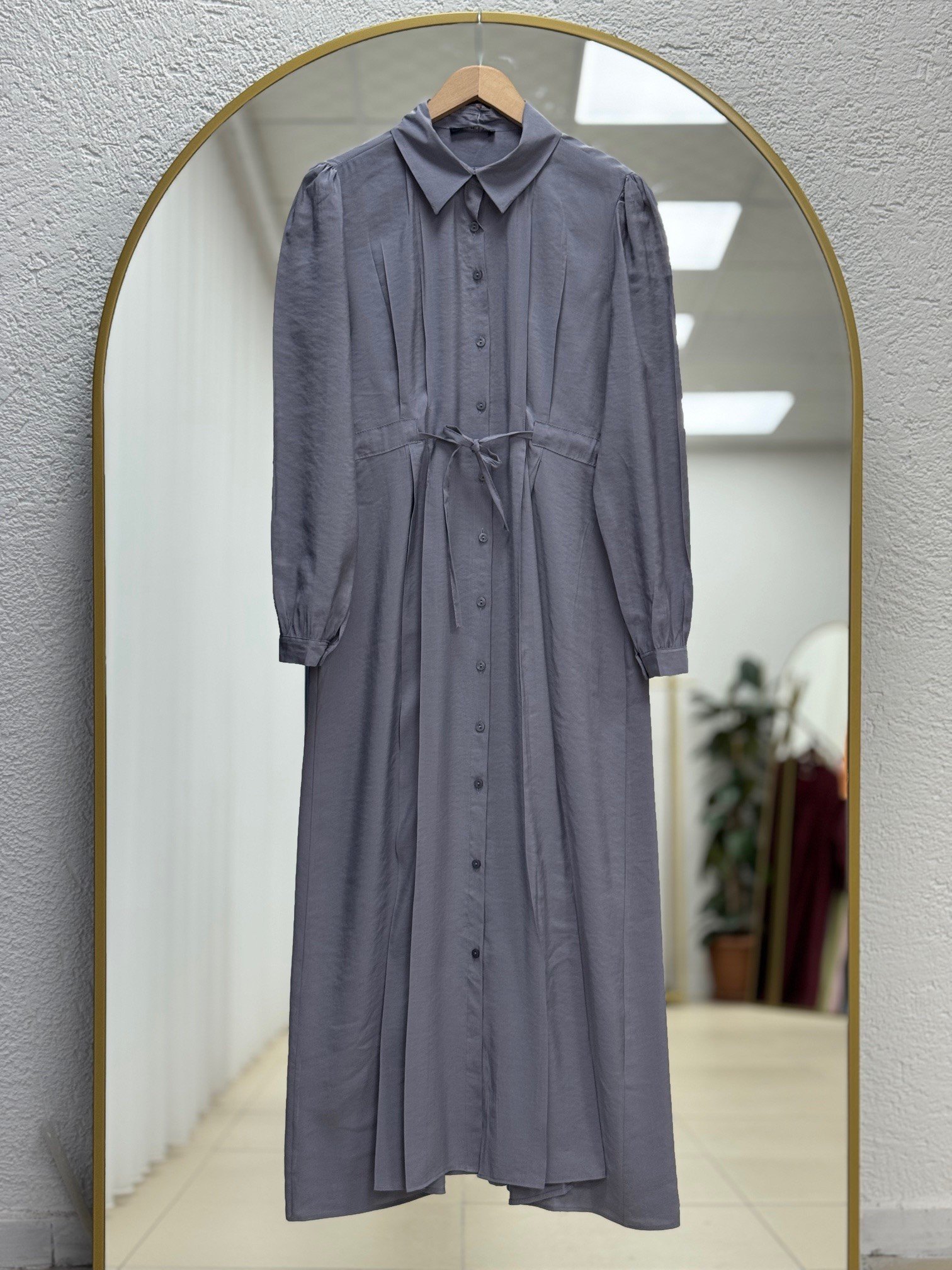 Marista Ön ve Arka Pile Detaylı Beli Tünelli Modal Elbise-TN029 Gri