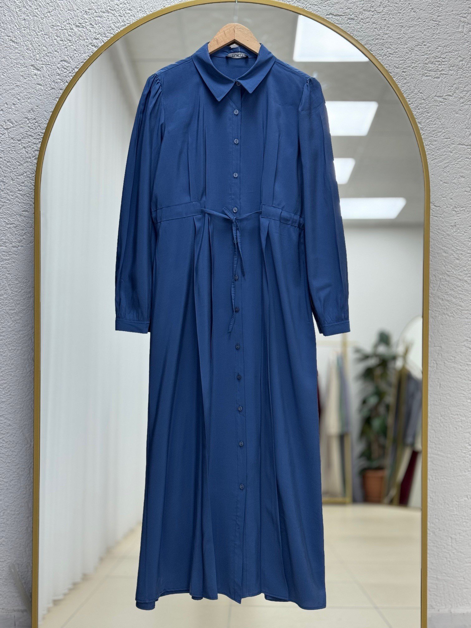 Marista Ön ve Arka Pile Detaylı Beli Tünelli Modal Elbise-TN029 Lacivert