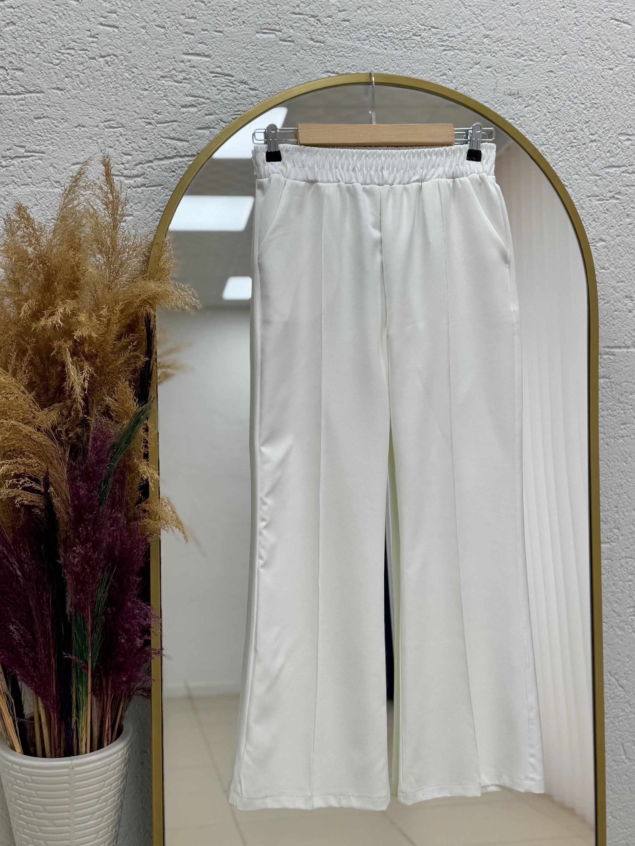 Melena Yandan Çımalı İspanyol Paça Pantolon-Çİ514 Beyaz