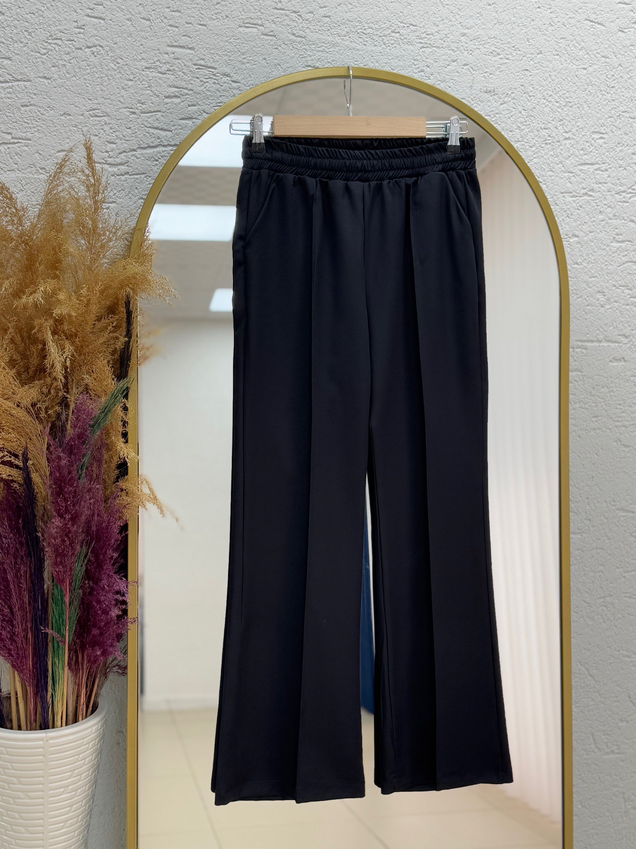 Melena Yandan Çımalı İspanyol Paça Pantolon-Çİ514 Siyah