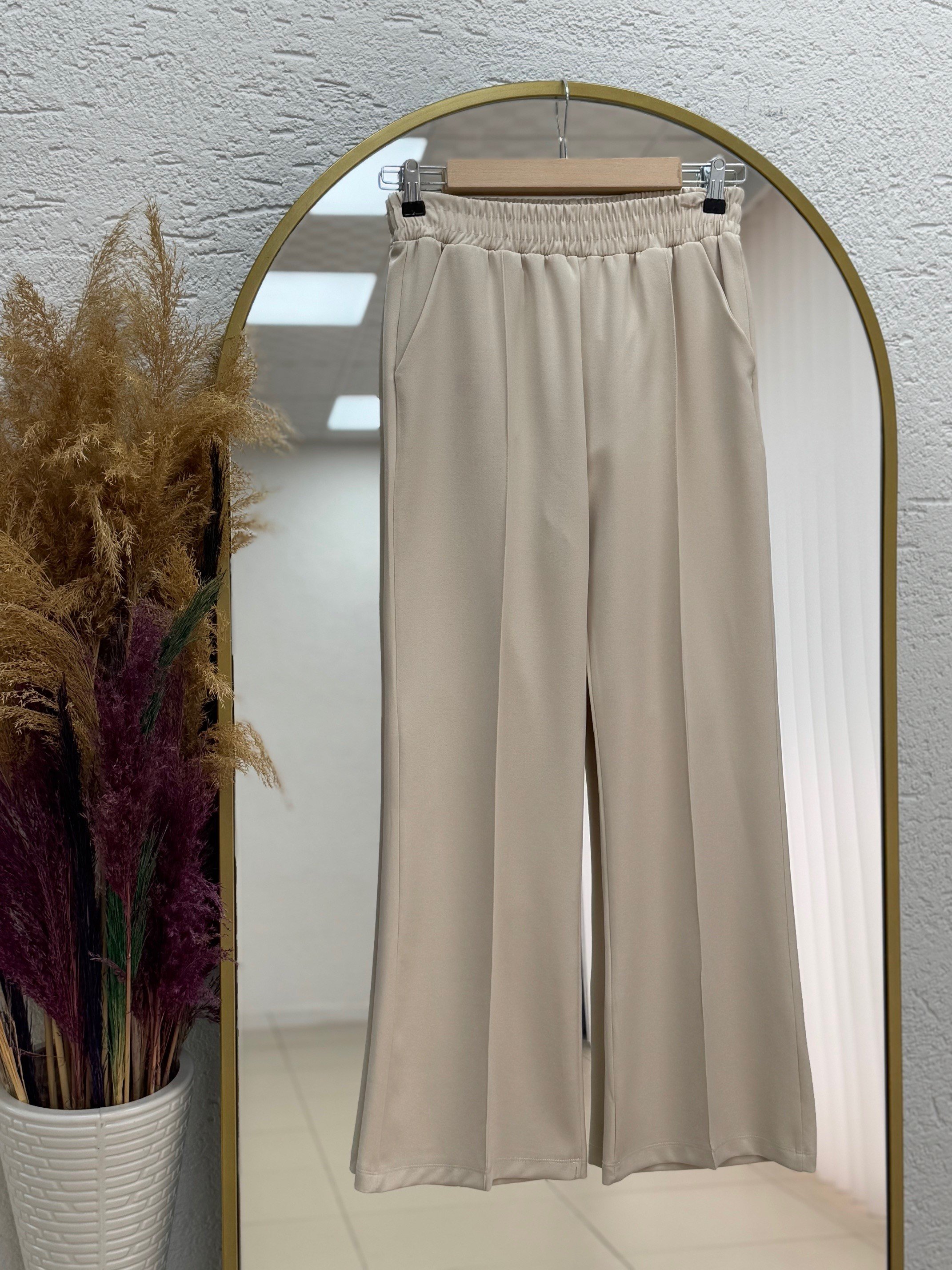 Melena Yandan Çımalı İspanyol Paça Pantolon-Çİ514 Taş