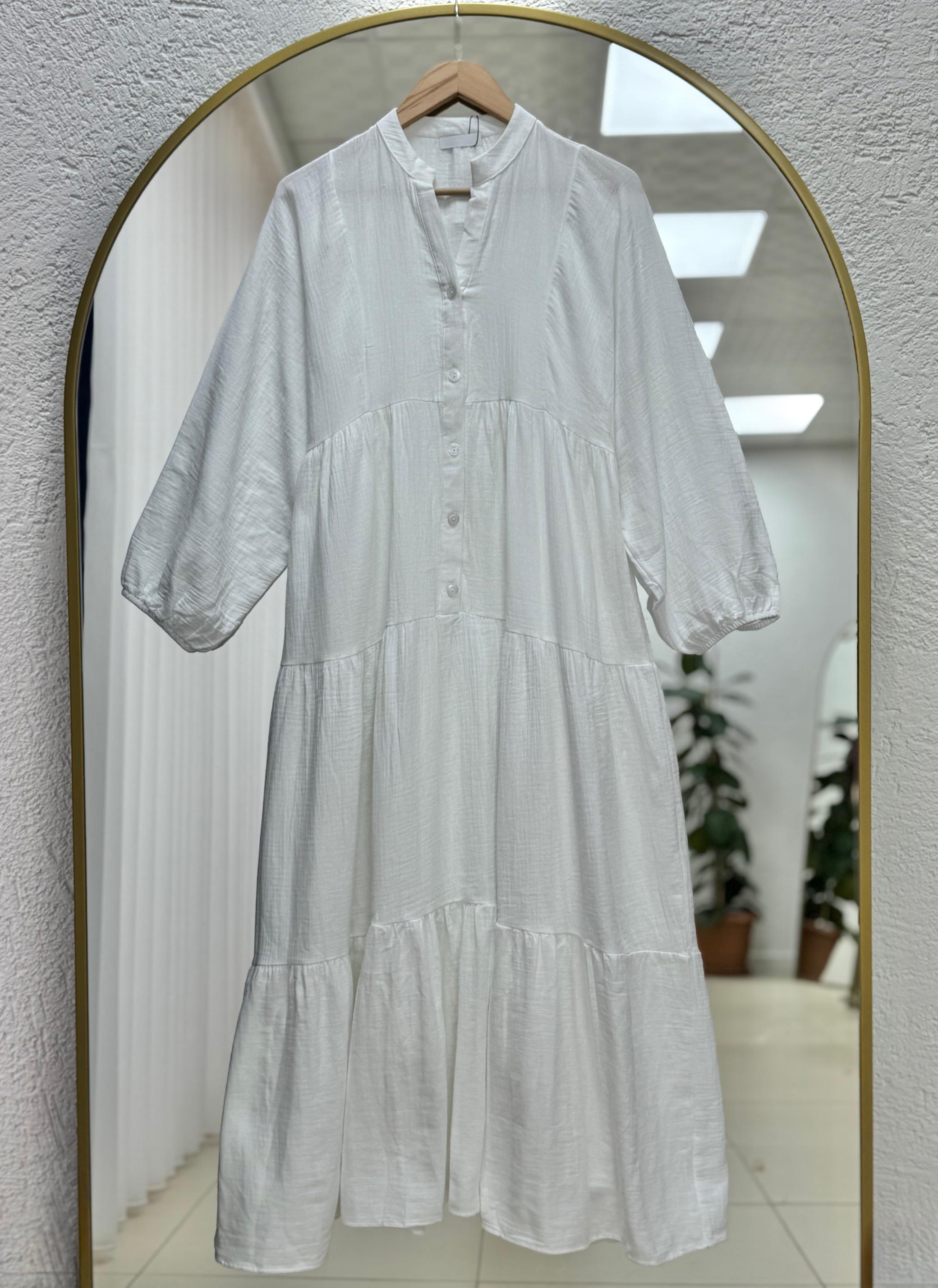 Melilia Katlı Düğmeli Keten Elbise-SA2560 Ekru