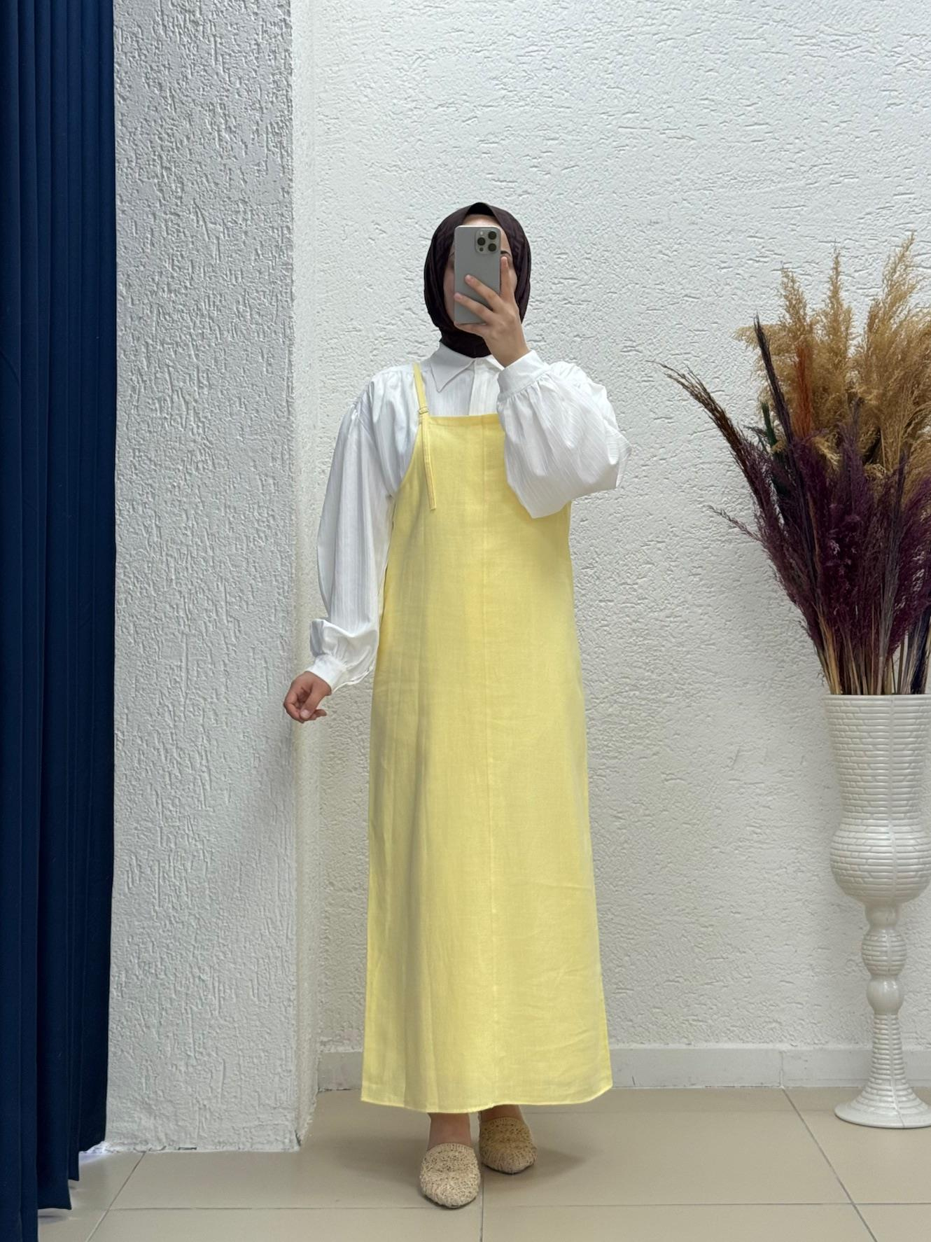 Melinda Toka Detaylı Keten Jile-AS4080 Sarı