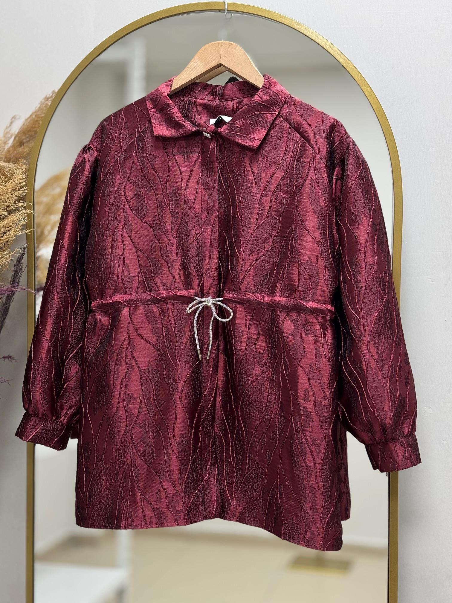 Mine Kolu İpli Nevrüllü Tunik-LE2423 Bordo