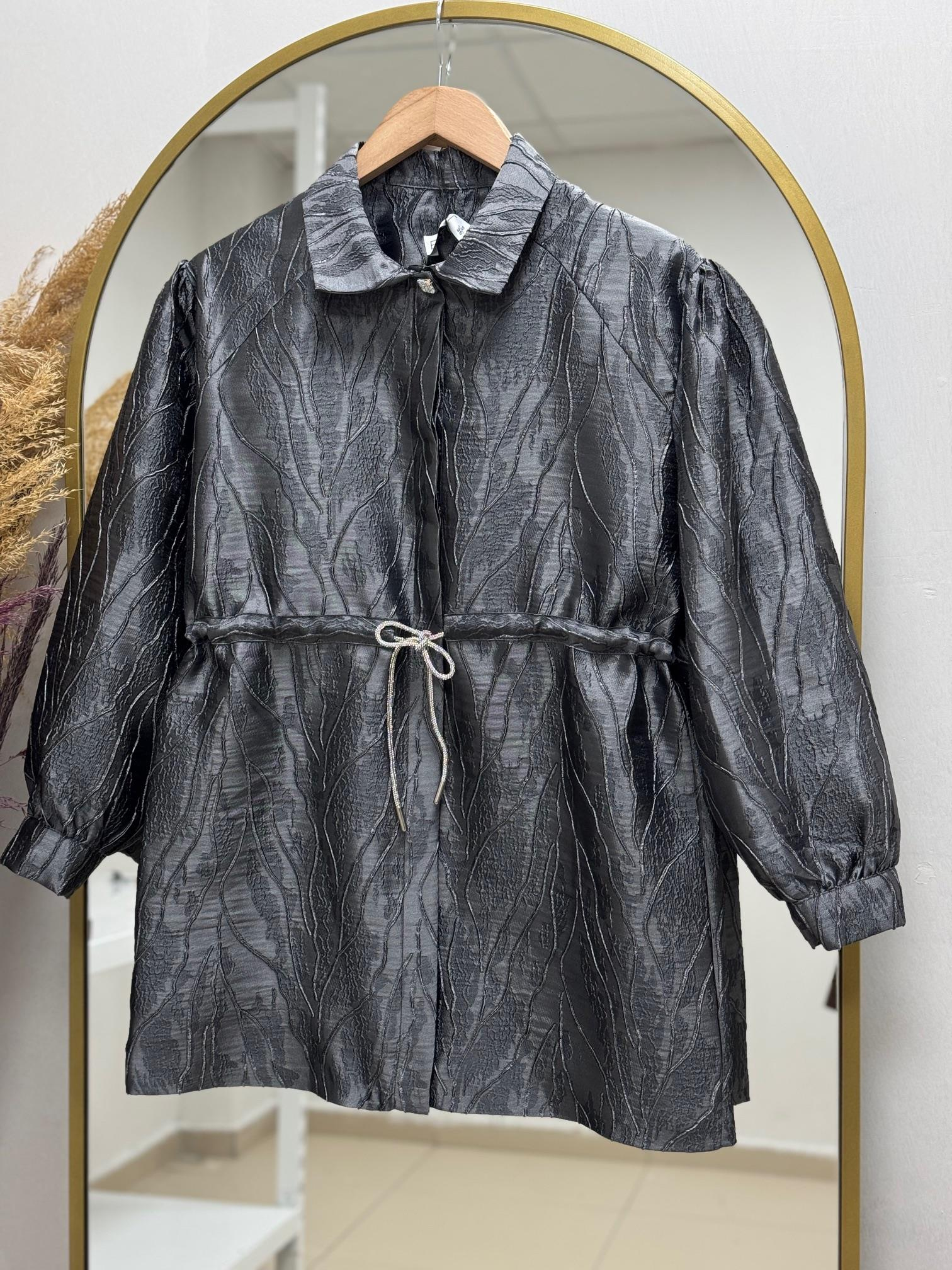 Mine Kolu İpli Nevrüllü Tunik-LE2423 Gri