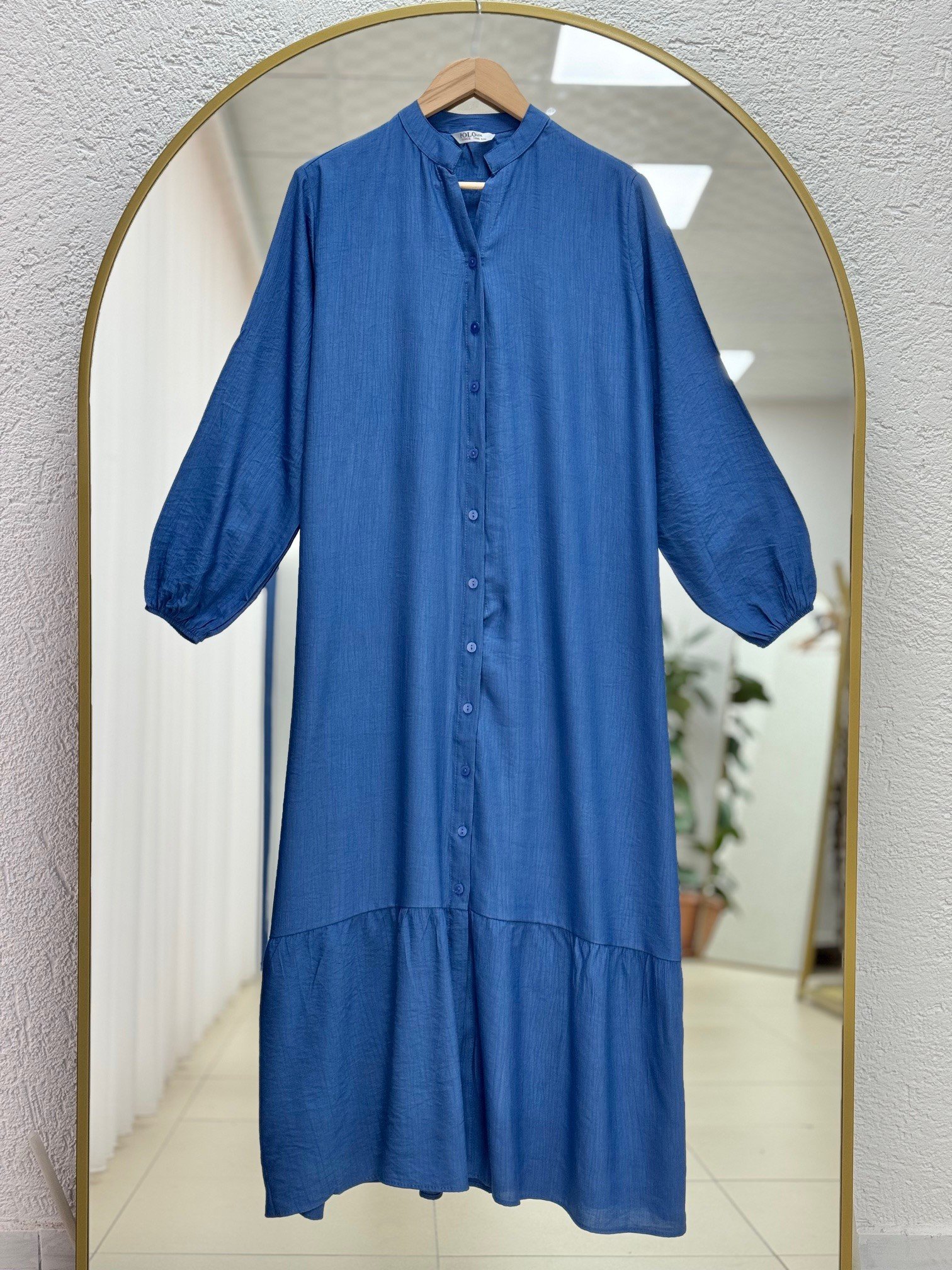 Miressa Boydan Düğmeli Kemerli Çilek Elbise-PE620 İndigo