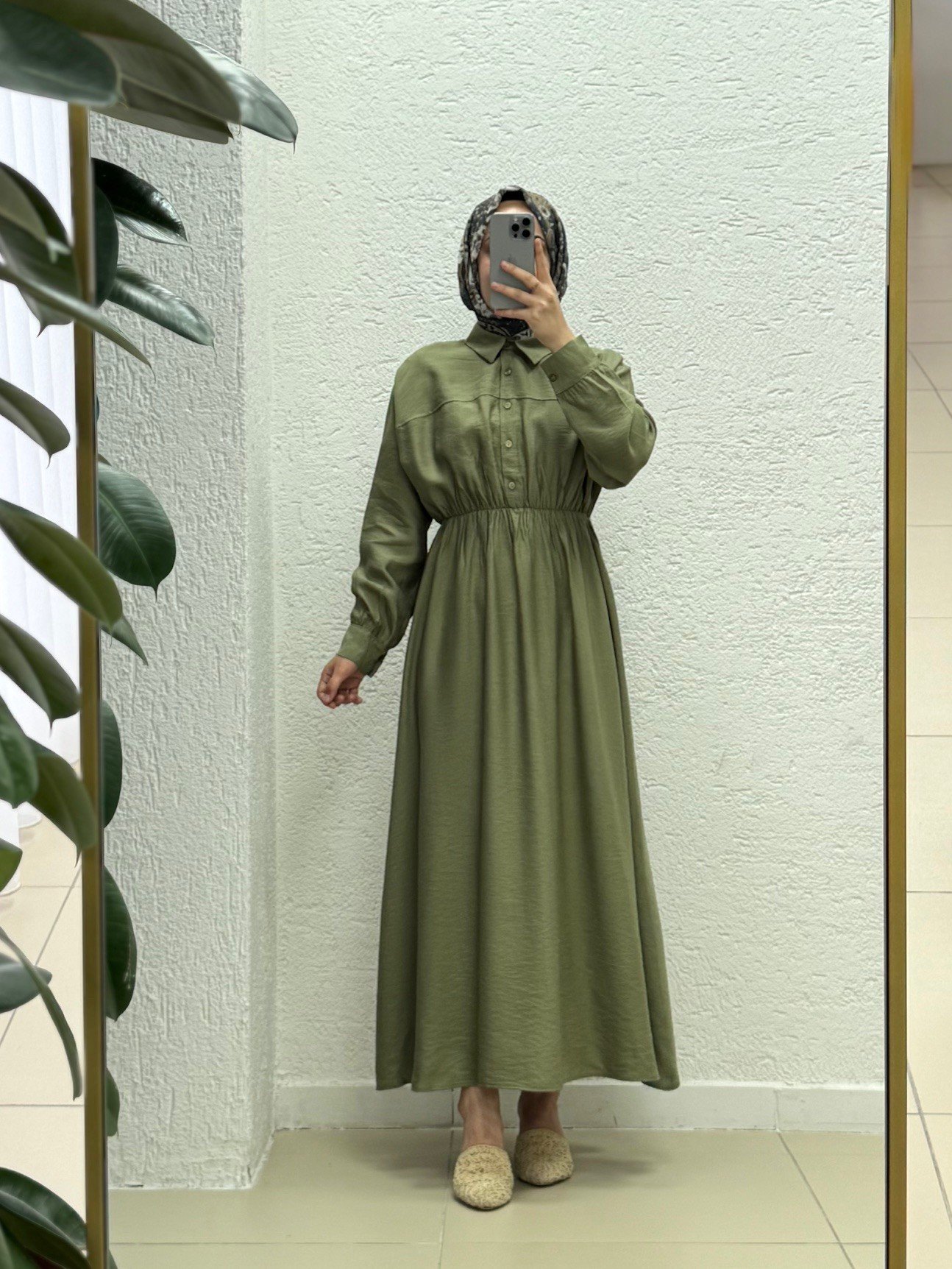 Mireva Yarım Patlı Beli Lastikli Elbise-AS4078 Haki