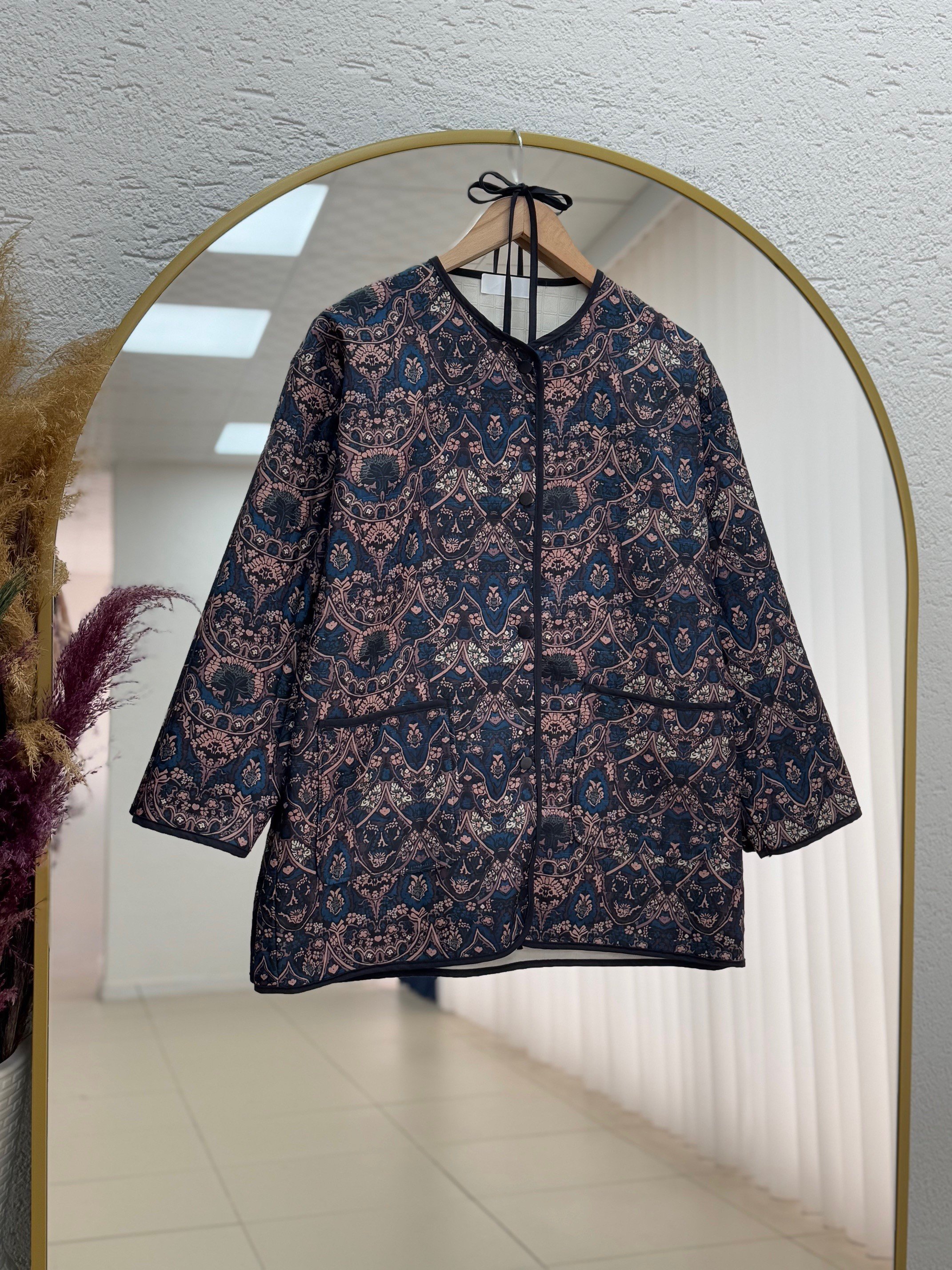 Mosina Etnik Desen Çift Cepli Kapitone Ceket-GS9950 Lacivert