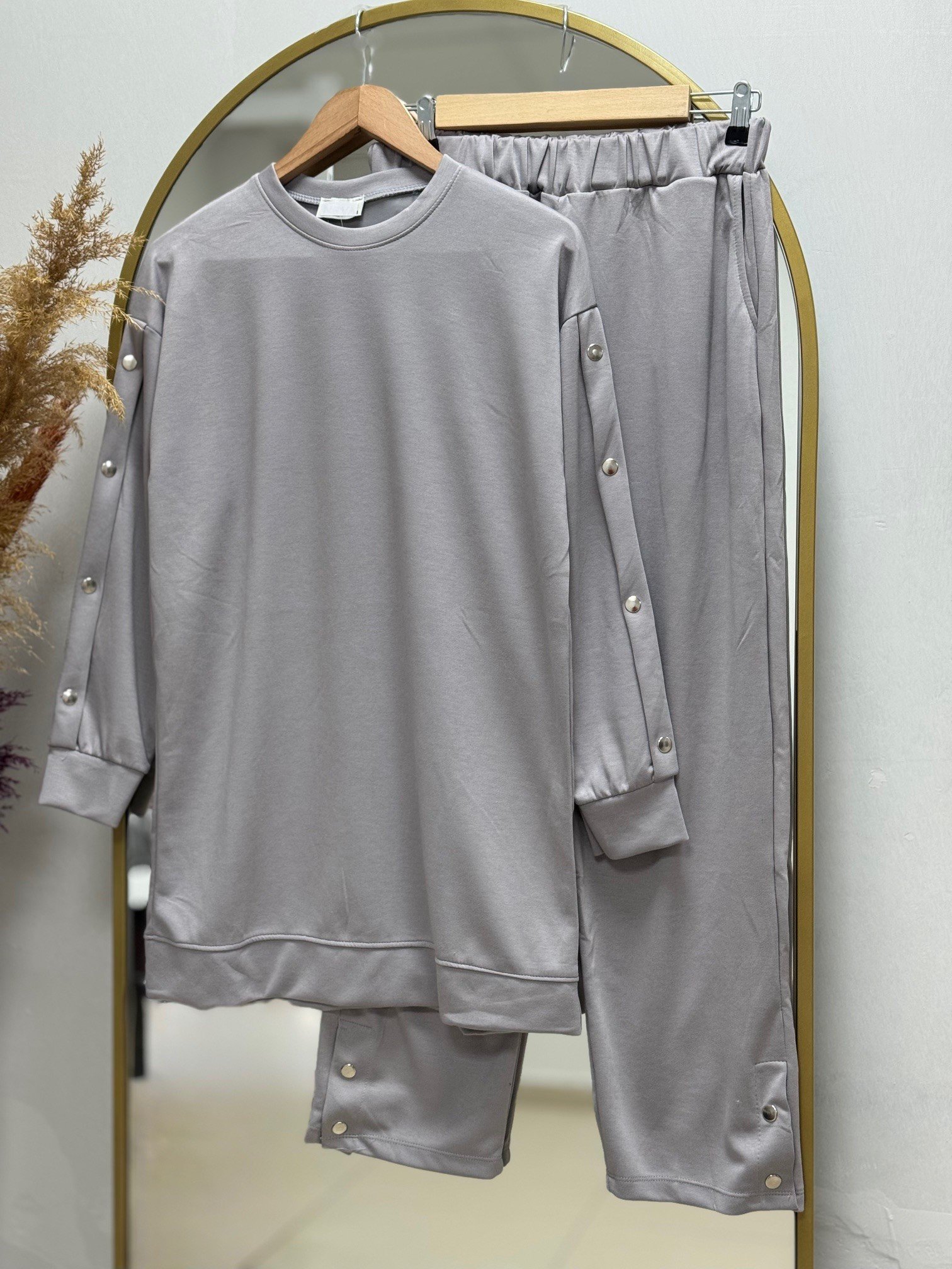 Nergis Kolu Paçası Çıtçıt Detaylı Takım-NA3381 Gri
