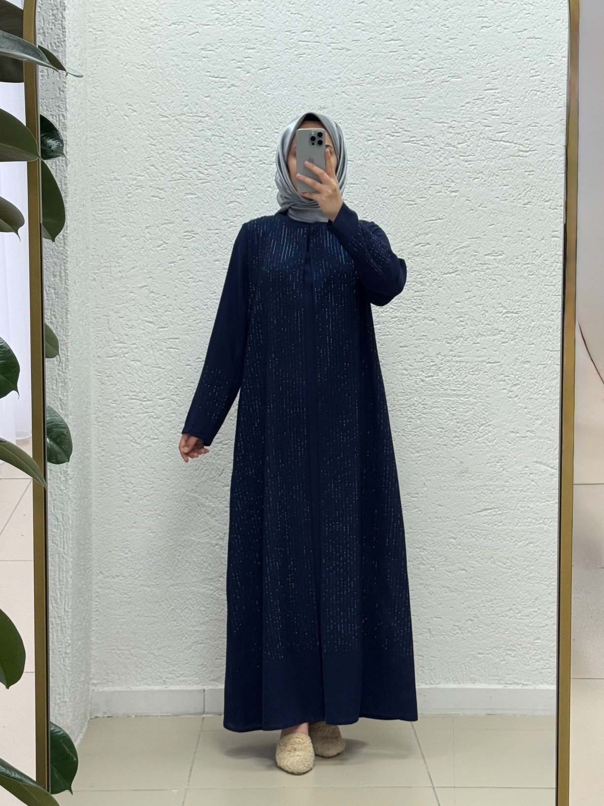 Nubella Kolları ve Önü Taşlı İkili Ferace-MB8509 Lacivert