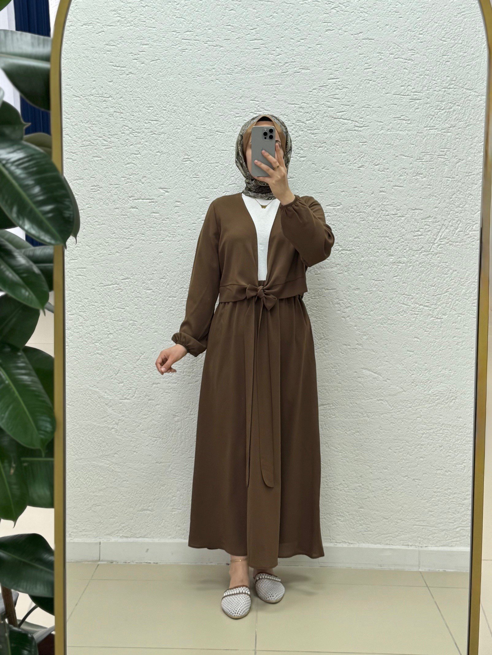 Nubola Önü Bağlamalı Etekli Takım-AS078 Kahve