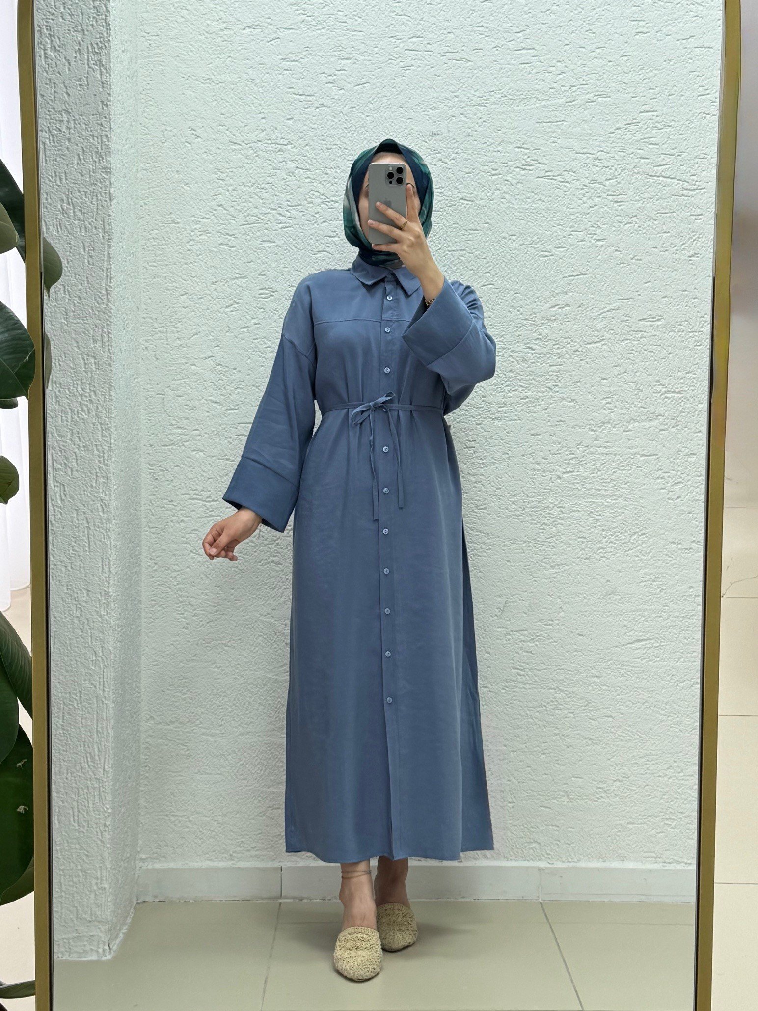 Nuboria Kadın Tesettür Yazlık Gömlek Elbise/Robalı Modal Takma Manşet-TN030 İndigo