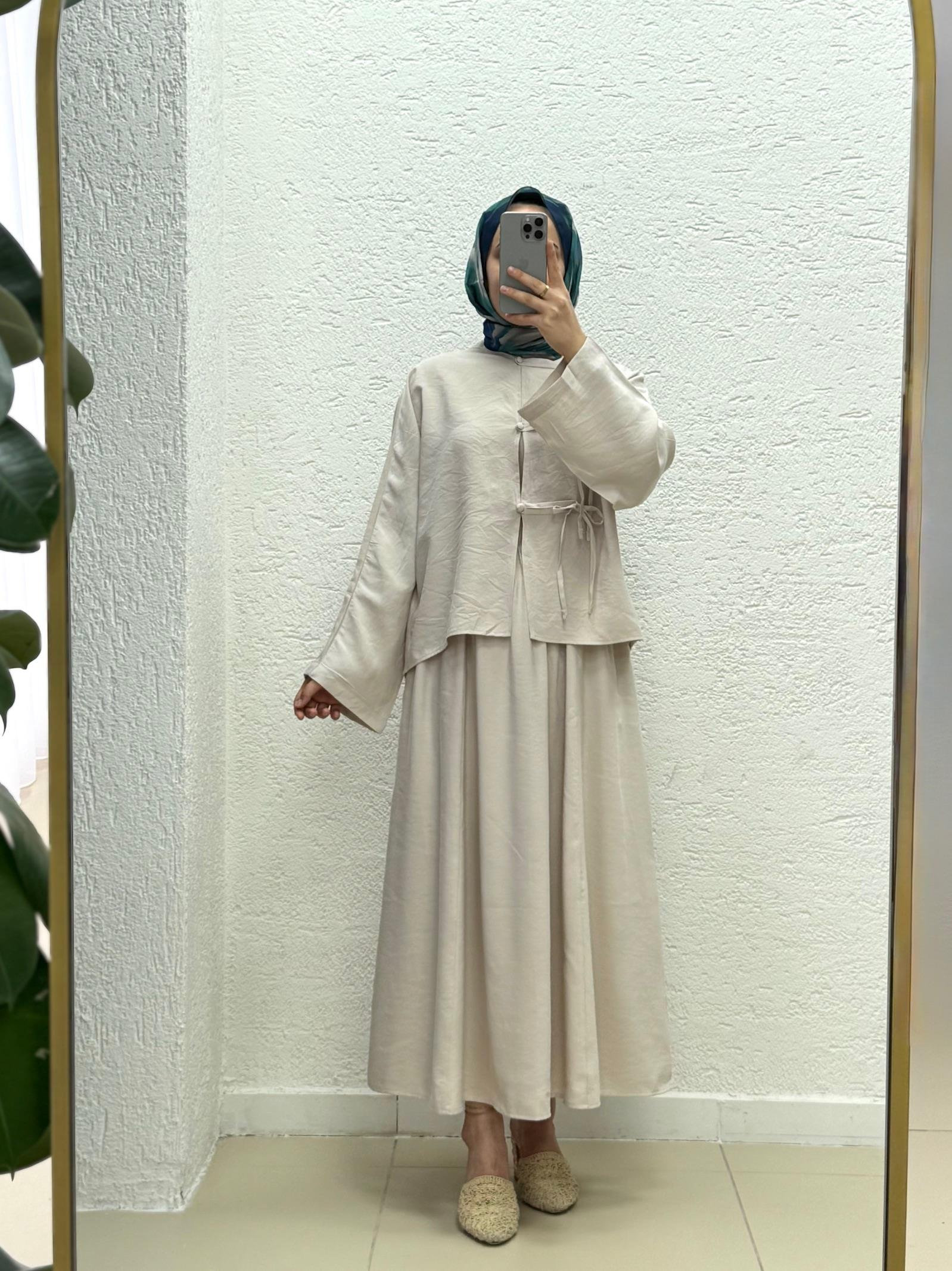 Orelinda Bağcık Detaylı Etekli Takım-EU3008 Taş