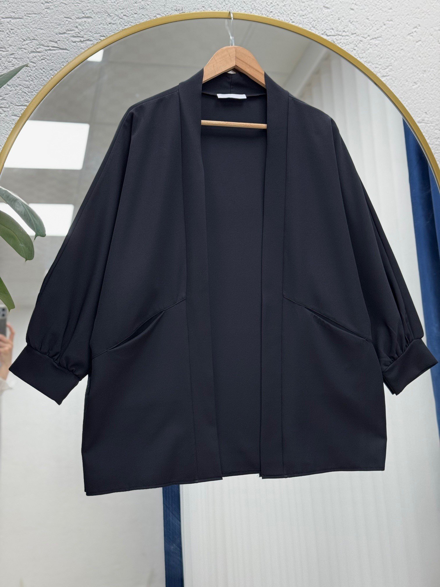 Rana Cep Detay Atlas Hırka-AS02423 Siyah