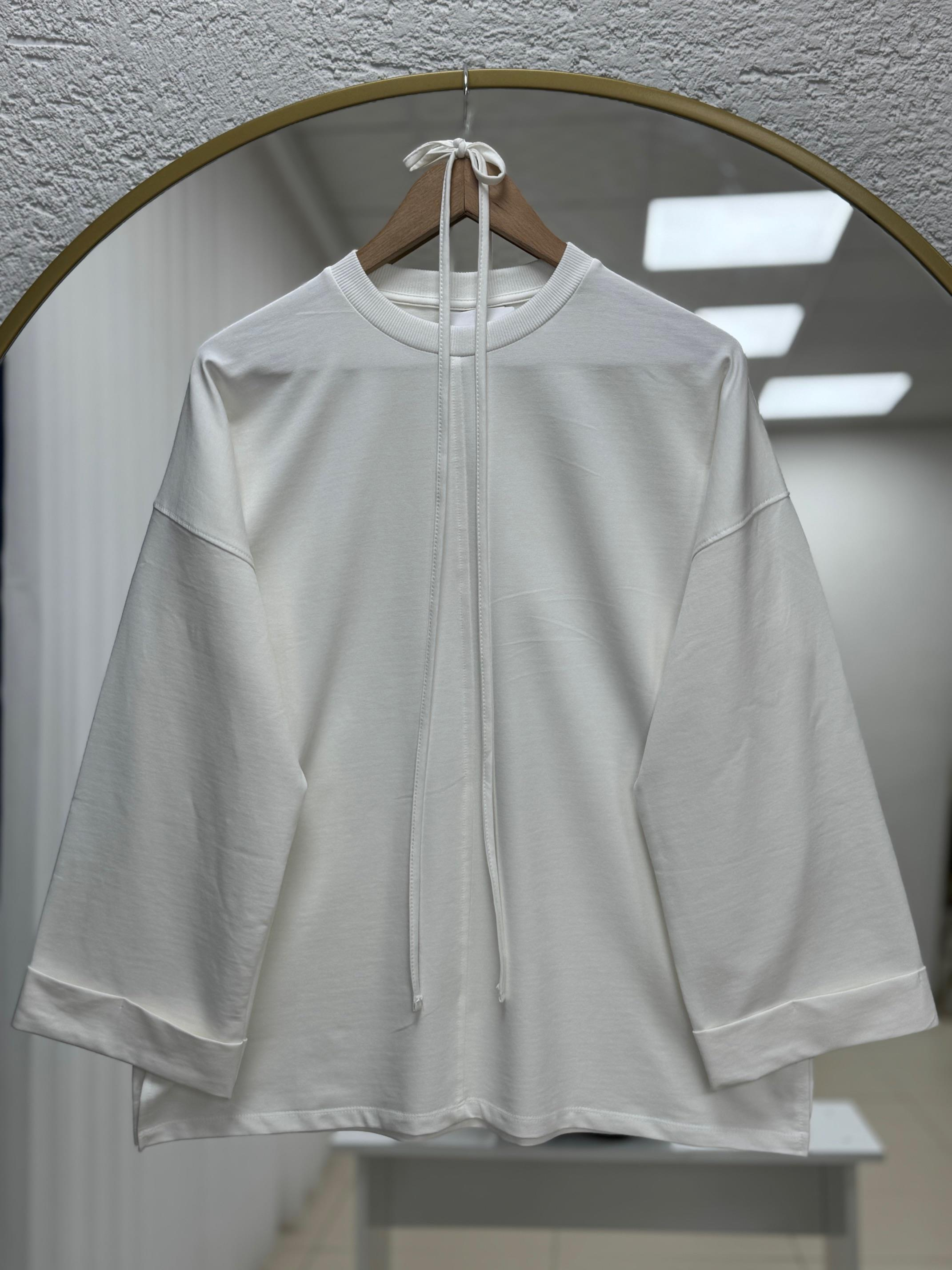 Rukiye Dikiş Detaylı Yırtmaçlı Sweatshirt-EU2755 Ekru
