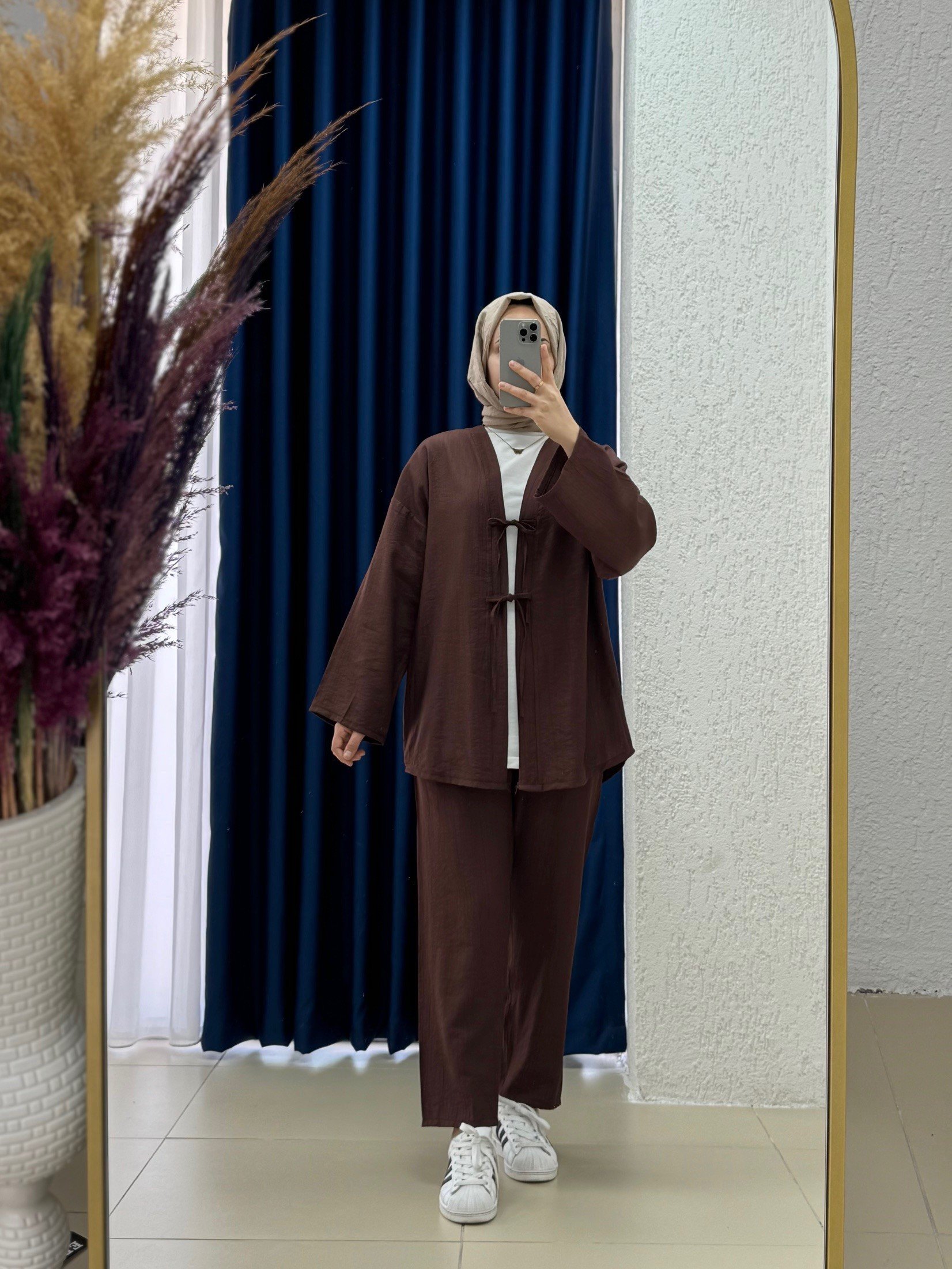 Serisa Önü Bağlamalı Pantolonlu Takım-TN0007 Kahve
