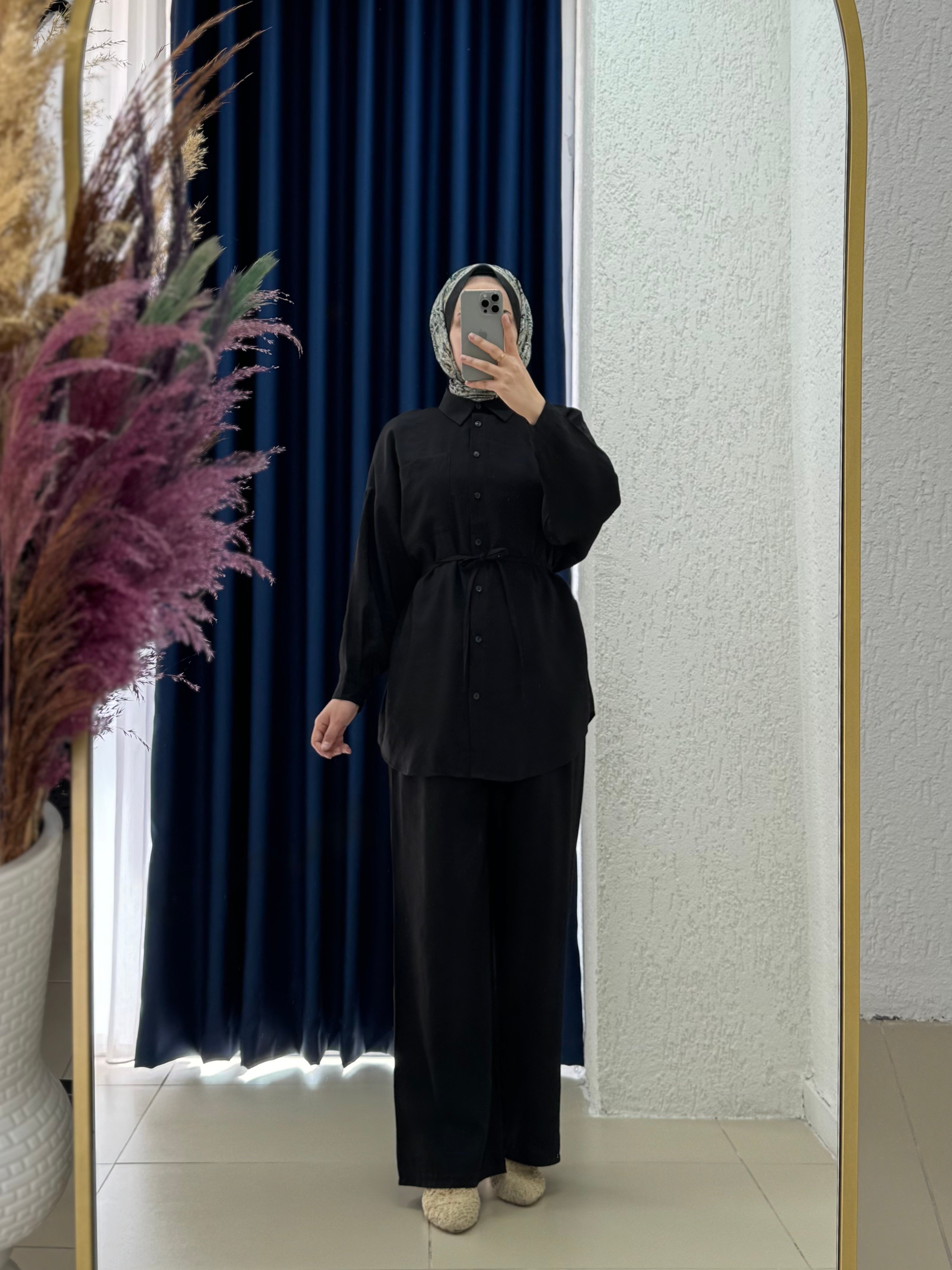 Üst Boyu:77 CM Pantolon Boyu:104 CM Kumaş:Keten Kumaştır.