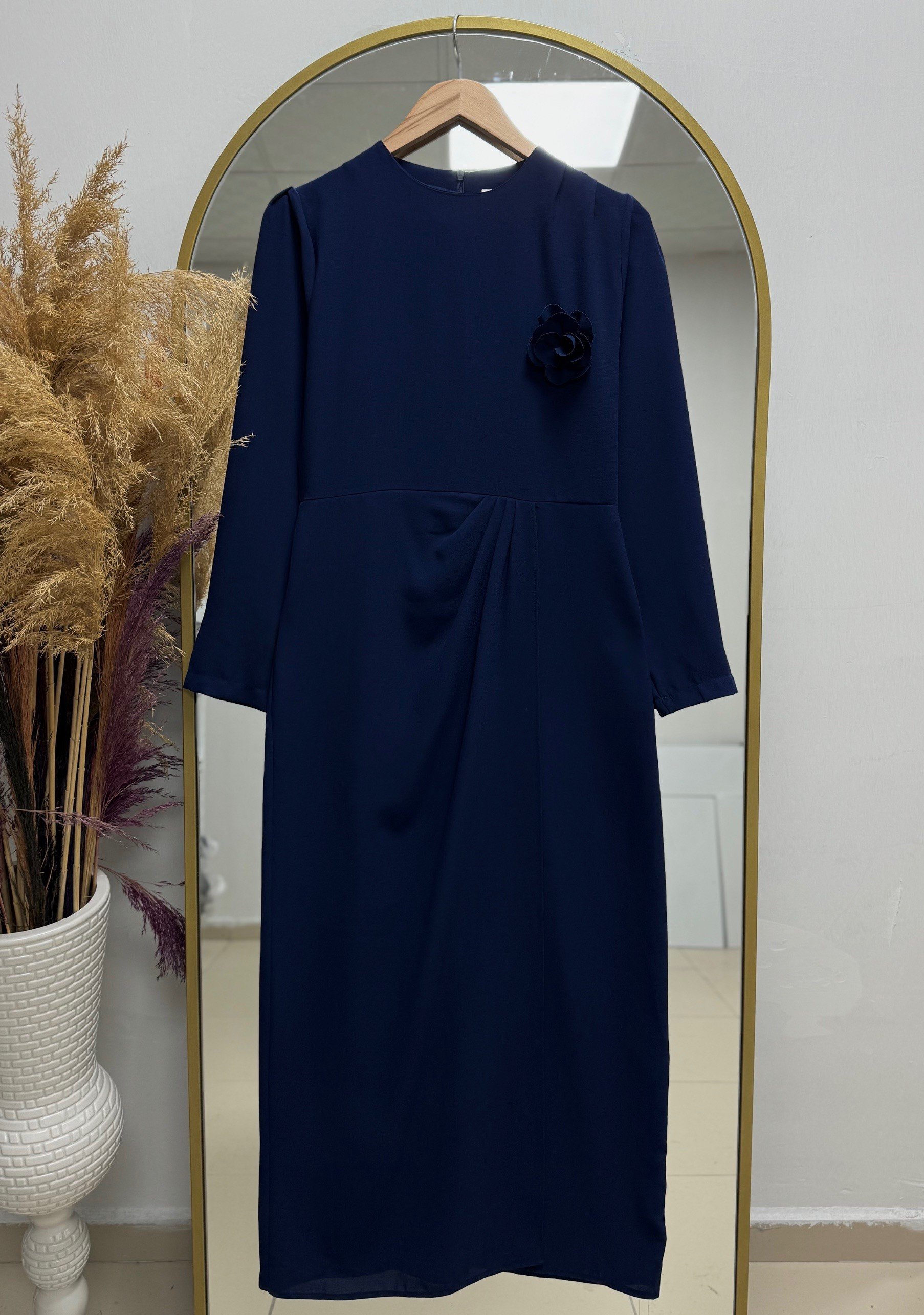 Şeyda Yırtmaçlı Parçalı Kalem Elbise-ET2126 Lacivert