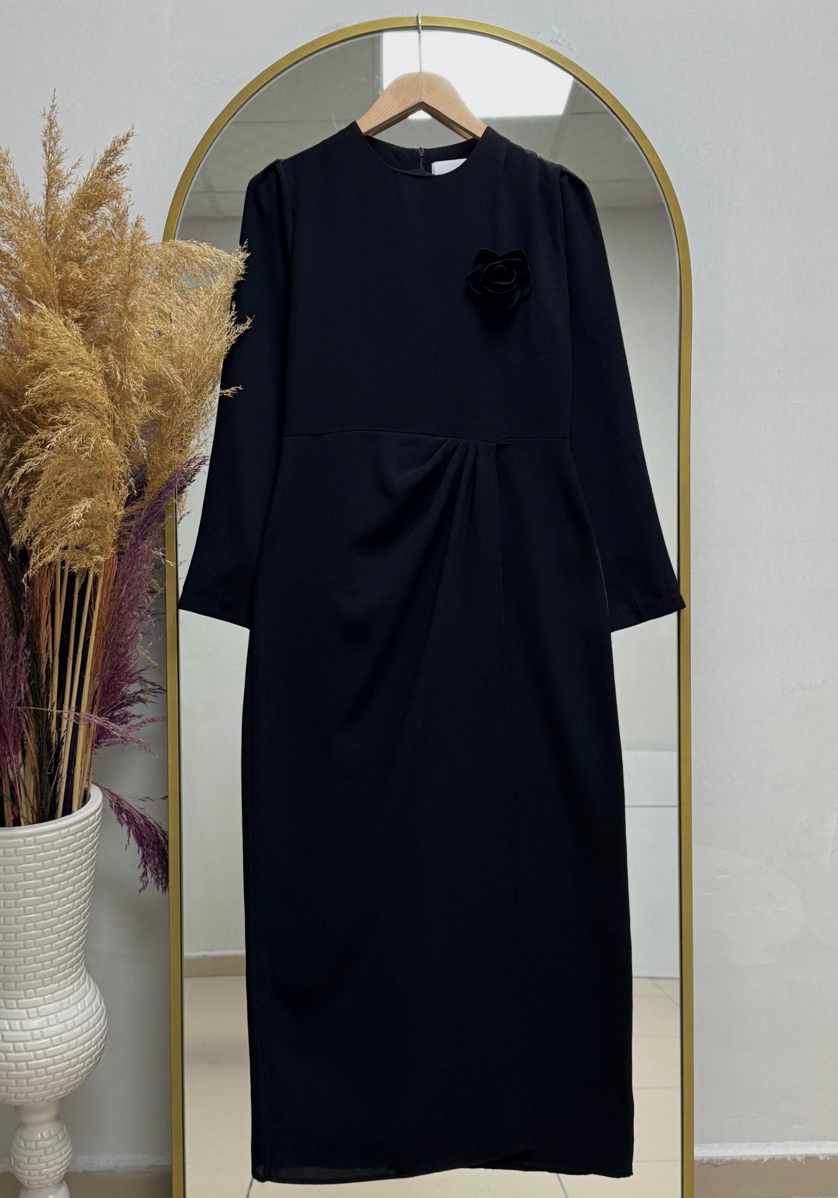 Şeyda Yırtmaçlı Parçalı Kalem Elbise-ET2126 Siyah