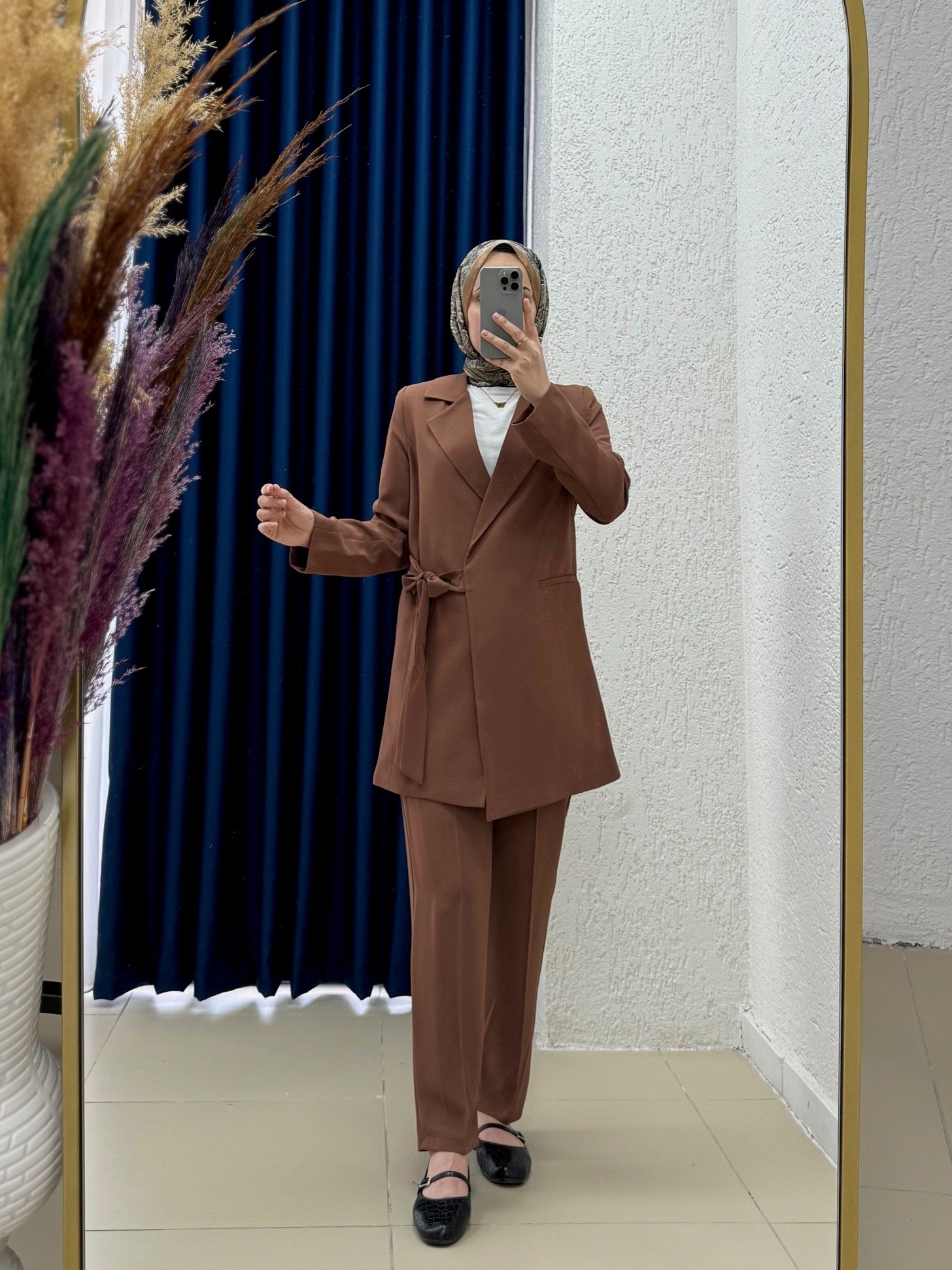 Sezen Bronşlu Yandan Bağlamalı Ceketli Takım-ÜN2016 Kahve