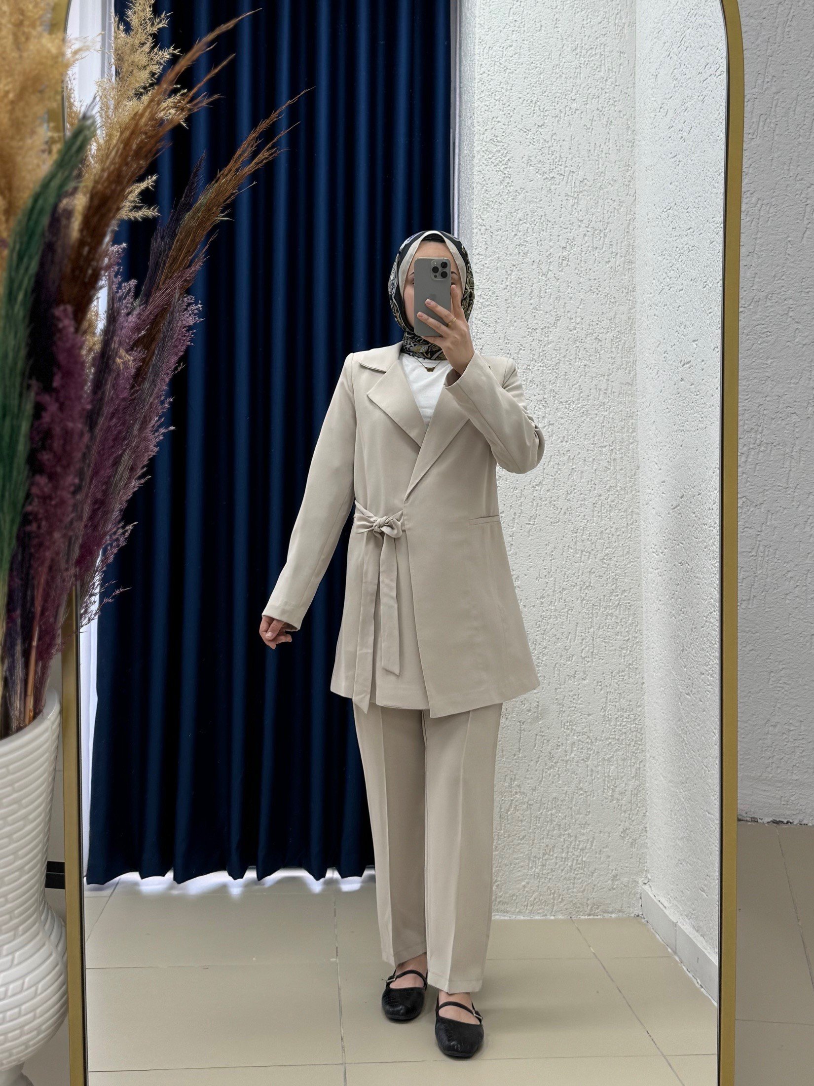 Sezen Bronşlu Yandan Bağlamalı Ceketli Takım-ÜN2016 Taş