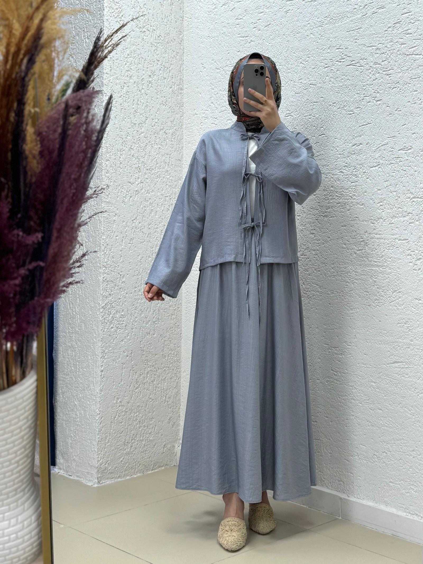 Sorelle Ön Bağcıklı Çilek Kumaş Etekli Takım-MF530 Gri