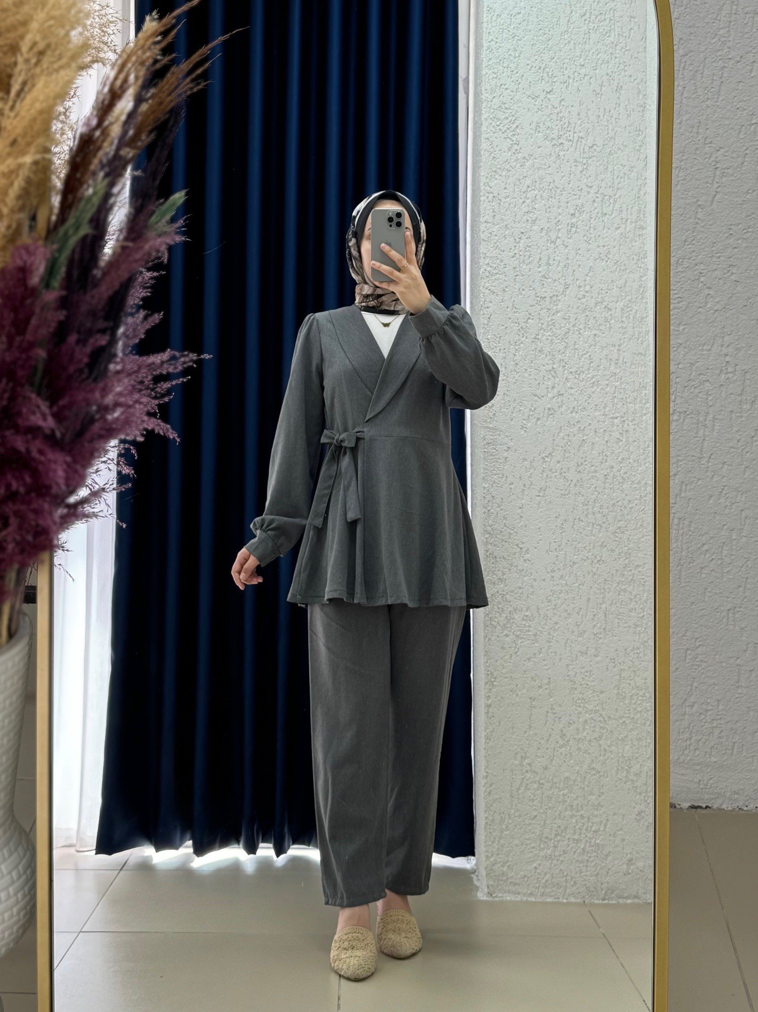 Sormora Kuşak Detaylı Ceketli Pantolonlu Takım-AS471 Antrasit