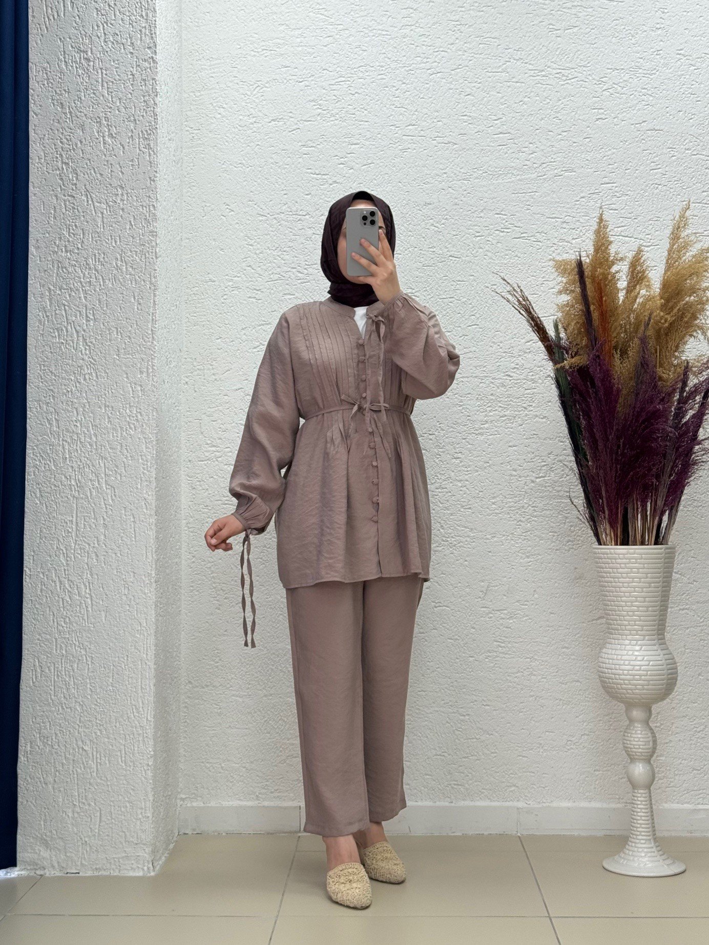 Tiredra Nervür Dikiş Detaylı Takım-EU2800-MF563 Vizon