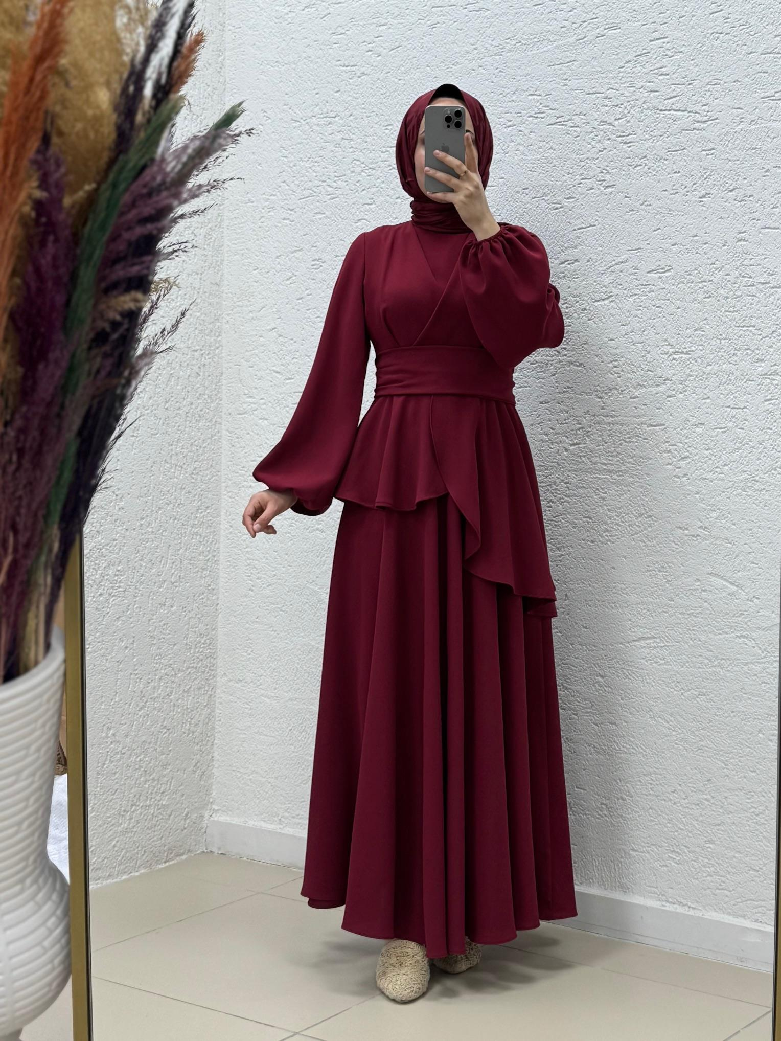 Tirona Etek Detaylı Krep Elbise-PA9646 Bordo