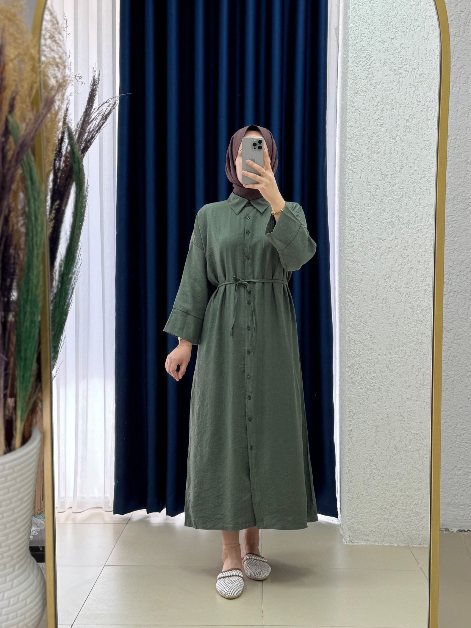 Velenya Takma Manşet Çilek Elbise-TN013 Haki