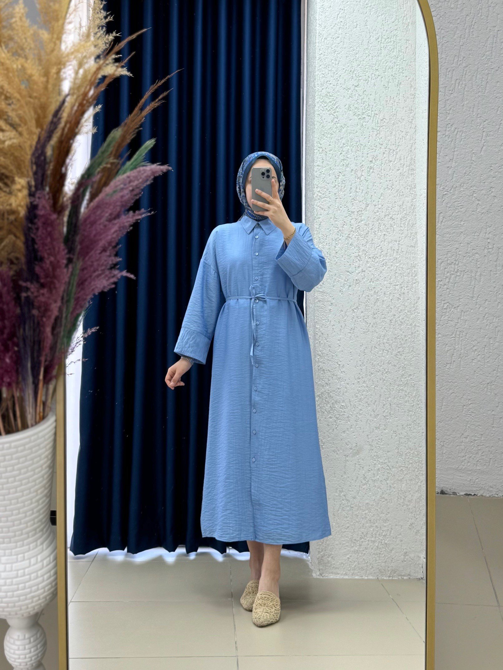 Velenya Takma Manşet Çilek Elbise-TN013 Mavi