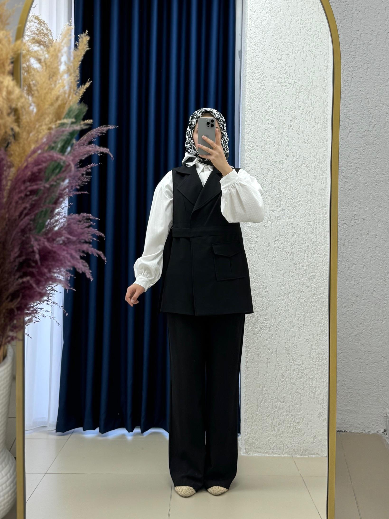 Veloria Tek Cepli Yandan Bağlamalı Yelekli Takım-ML3043 Siyah