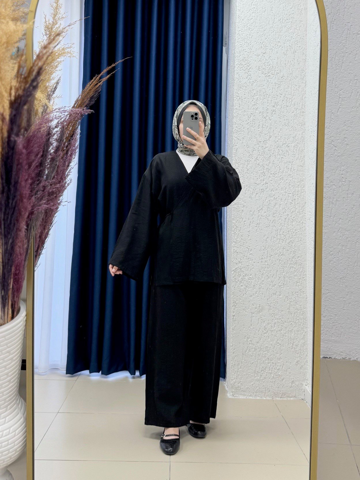 Vinmora Yandan Bağlamalı Kimonolu Çilek Pantolonlu Takım-EK544 Siyah