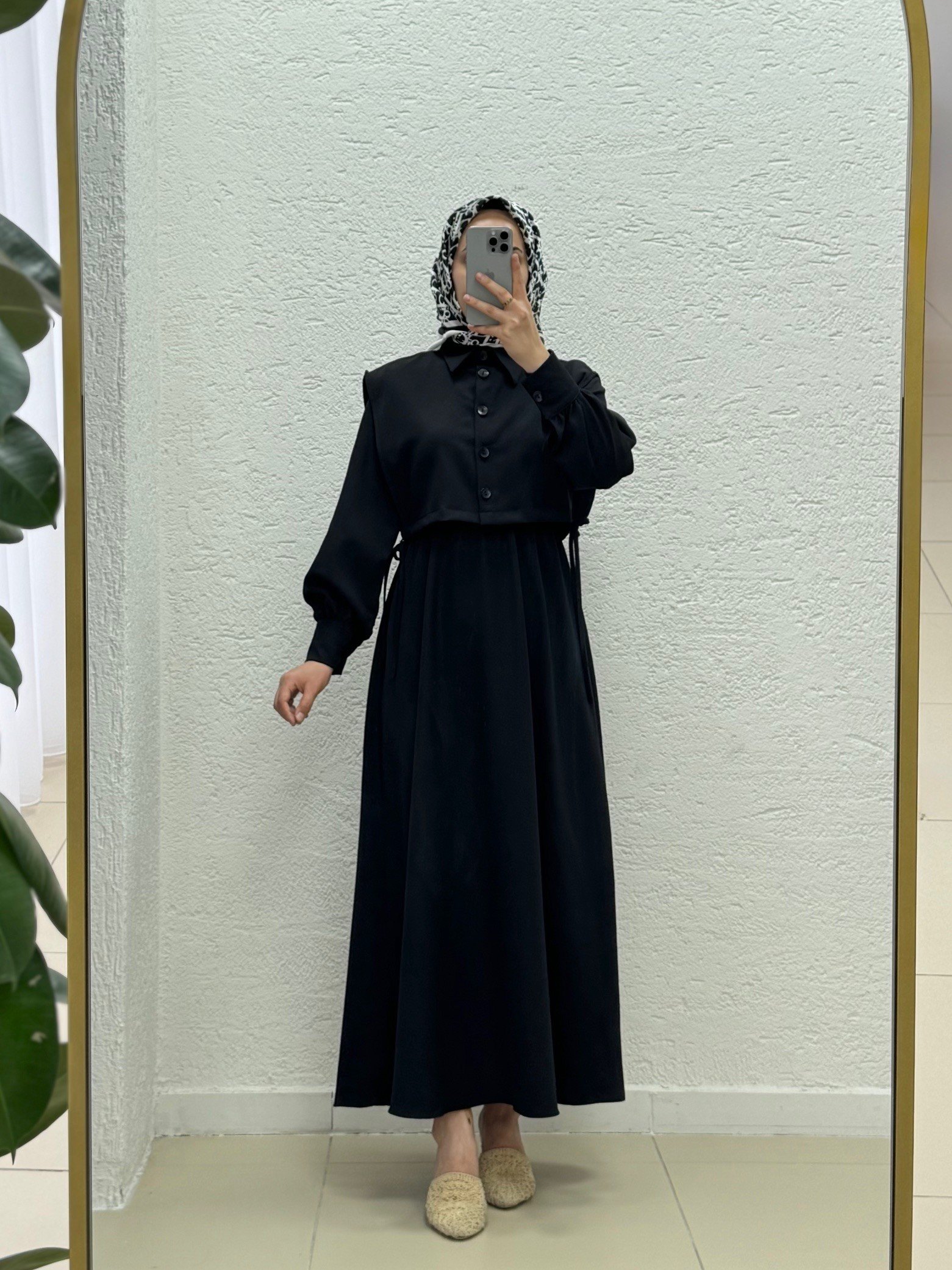 Vinoria Beli Lastikli Yeleği Düğmeli Dabıl Elbise-KN9899 Siyah