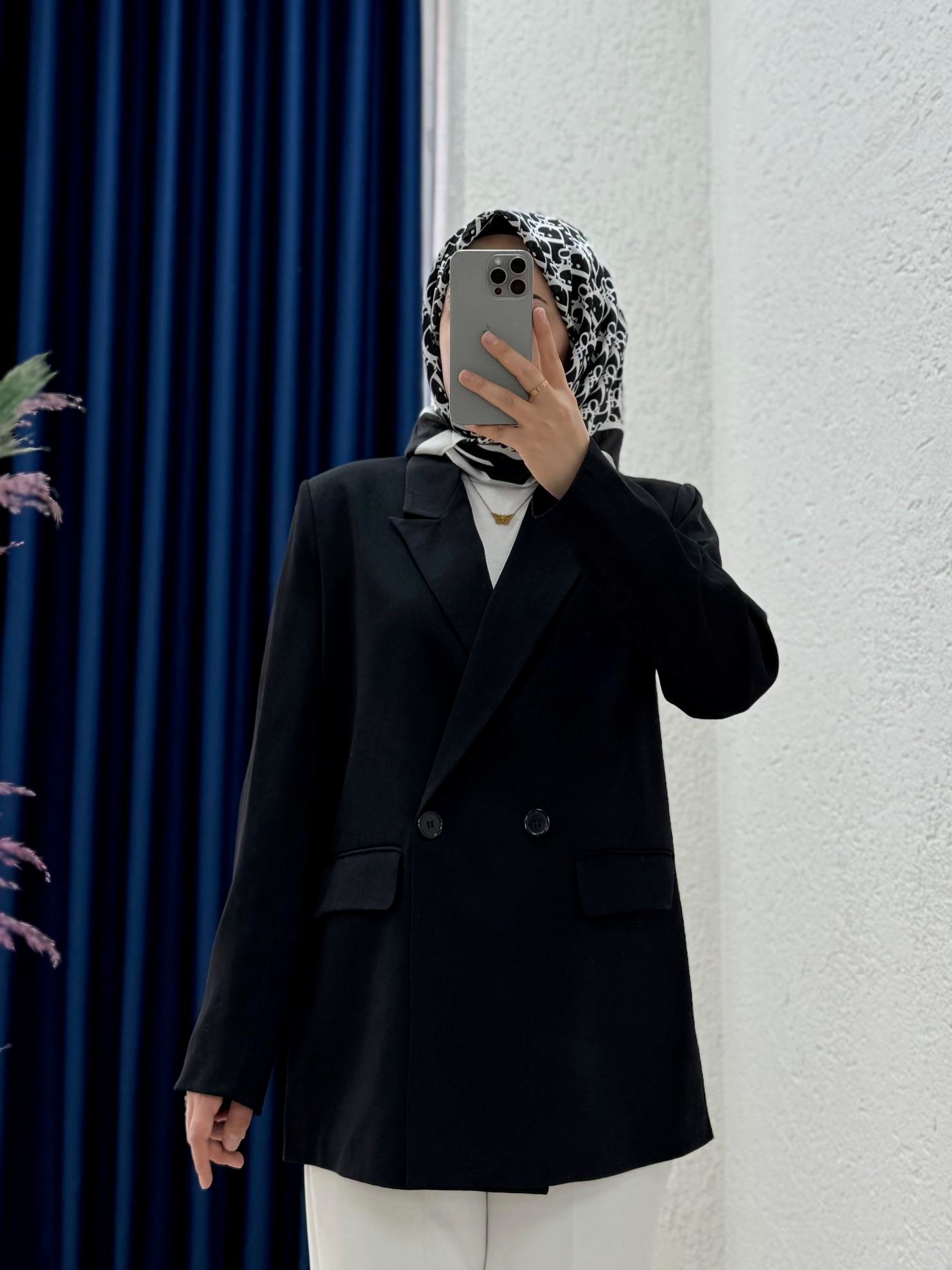 Yaren Çift Düğmeli Linda Twil Ceket-EL1889 Siyah