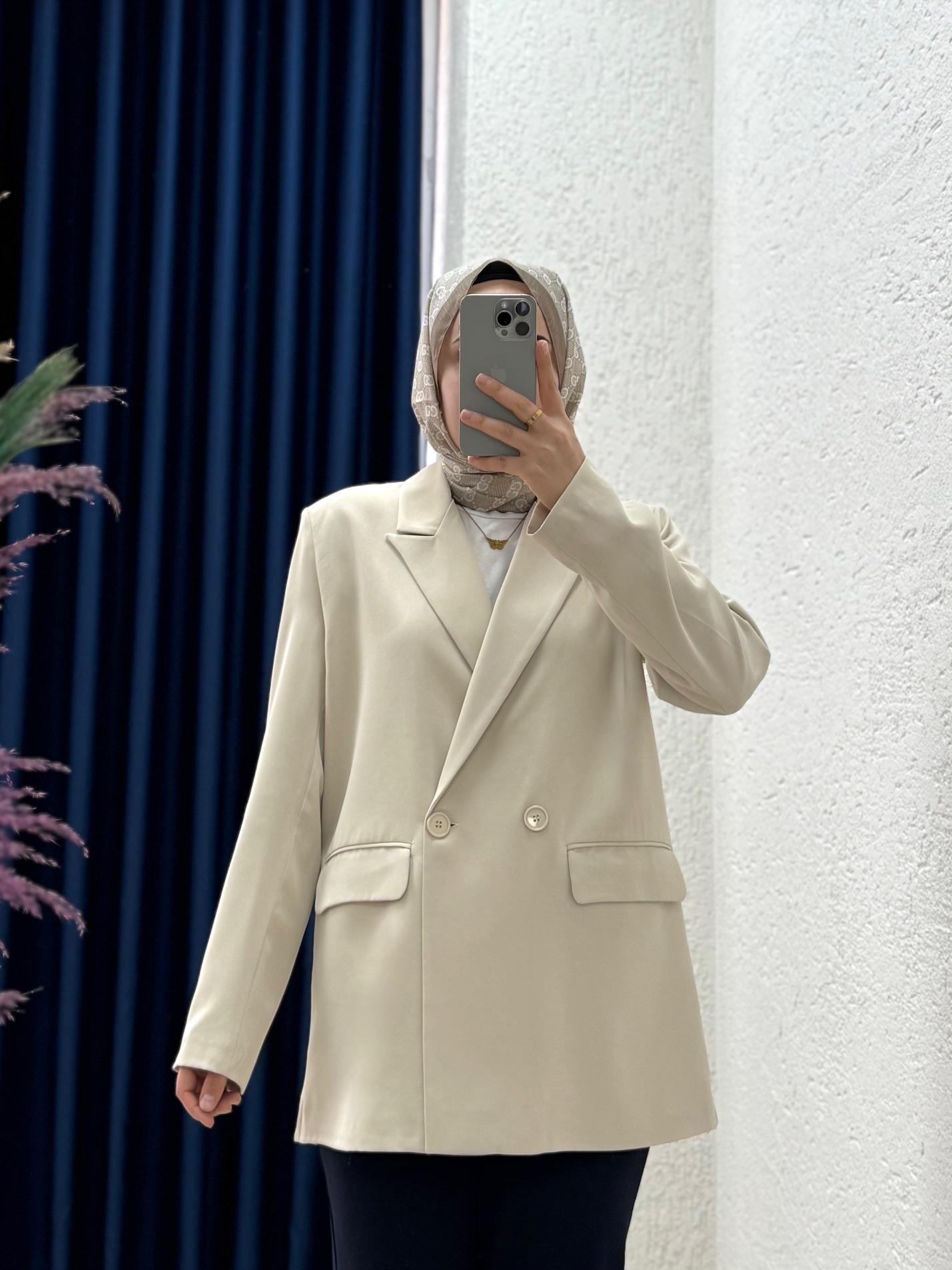 Yaren Çift Düğmeli Linda Twil Ceket-EL1889 Taş