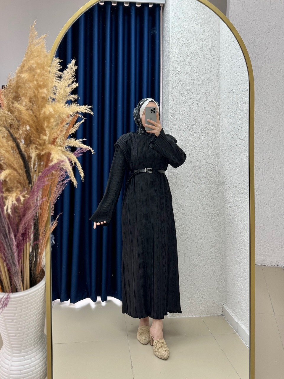Yelelle Bürümcük Elbise-SA25182 Siyah