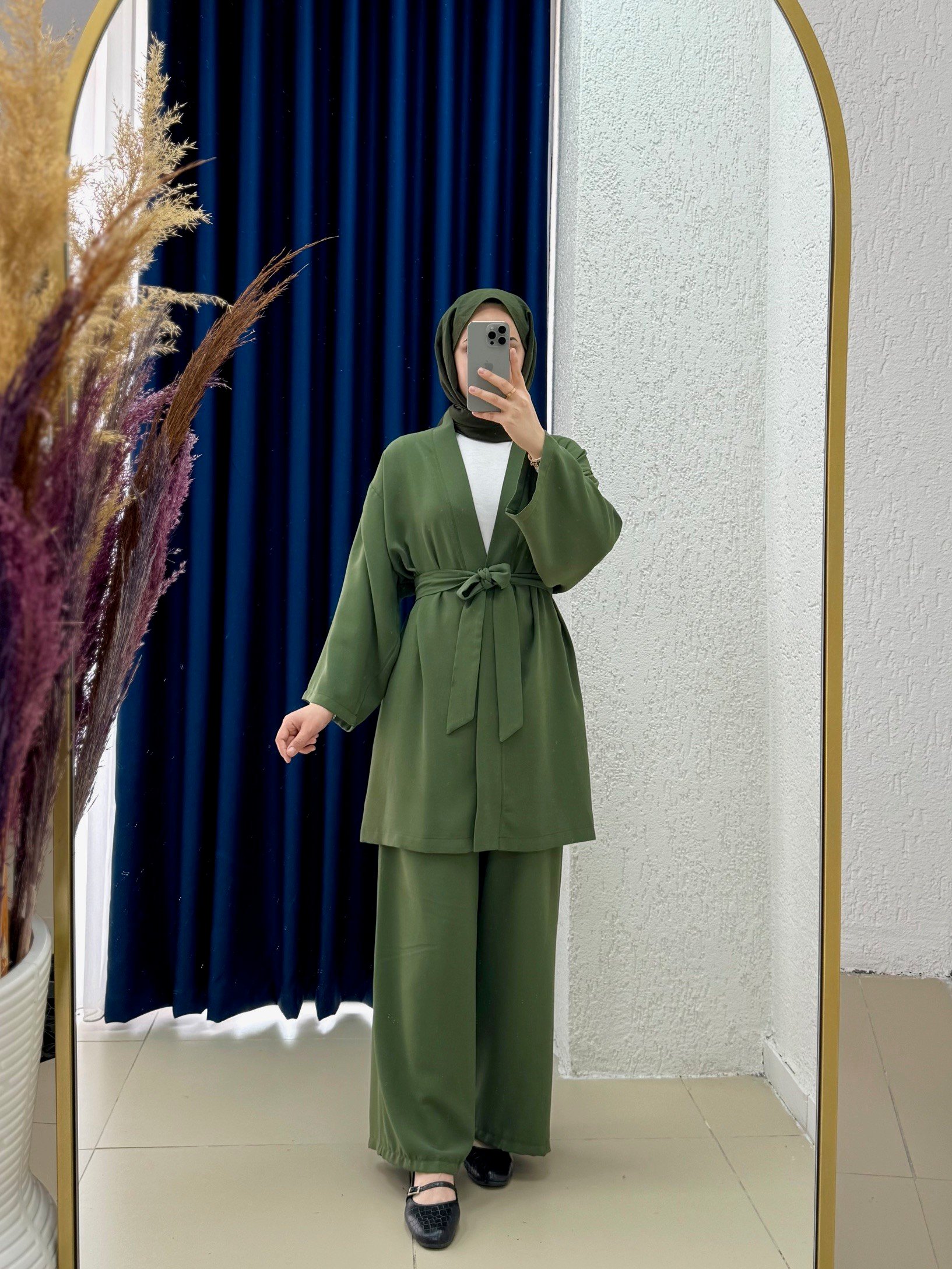 Zenoria Kuşaklı Ceketli Salaş Pantolonlu Takım-NL434 Haki
