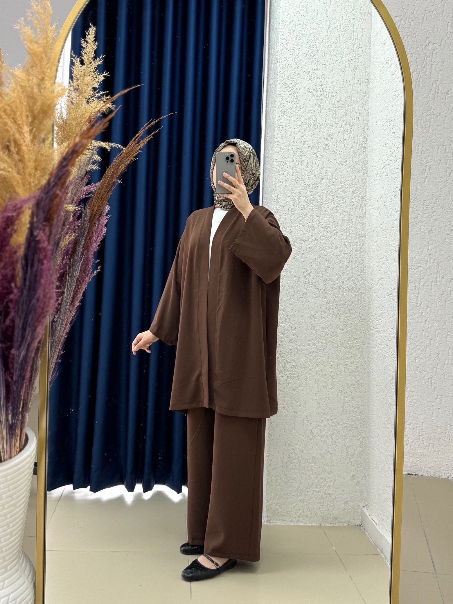 Zenoria Kuşaklı Ceketli Salaş Pantolonlu Takım-NL434 Kahve