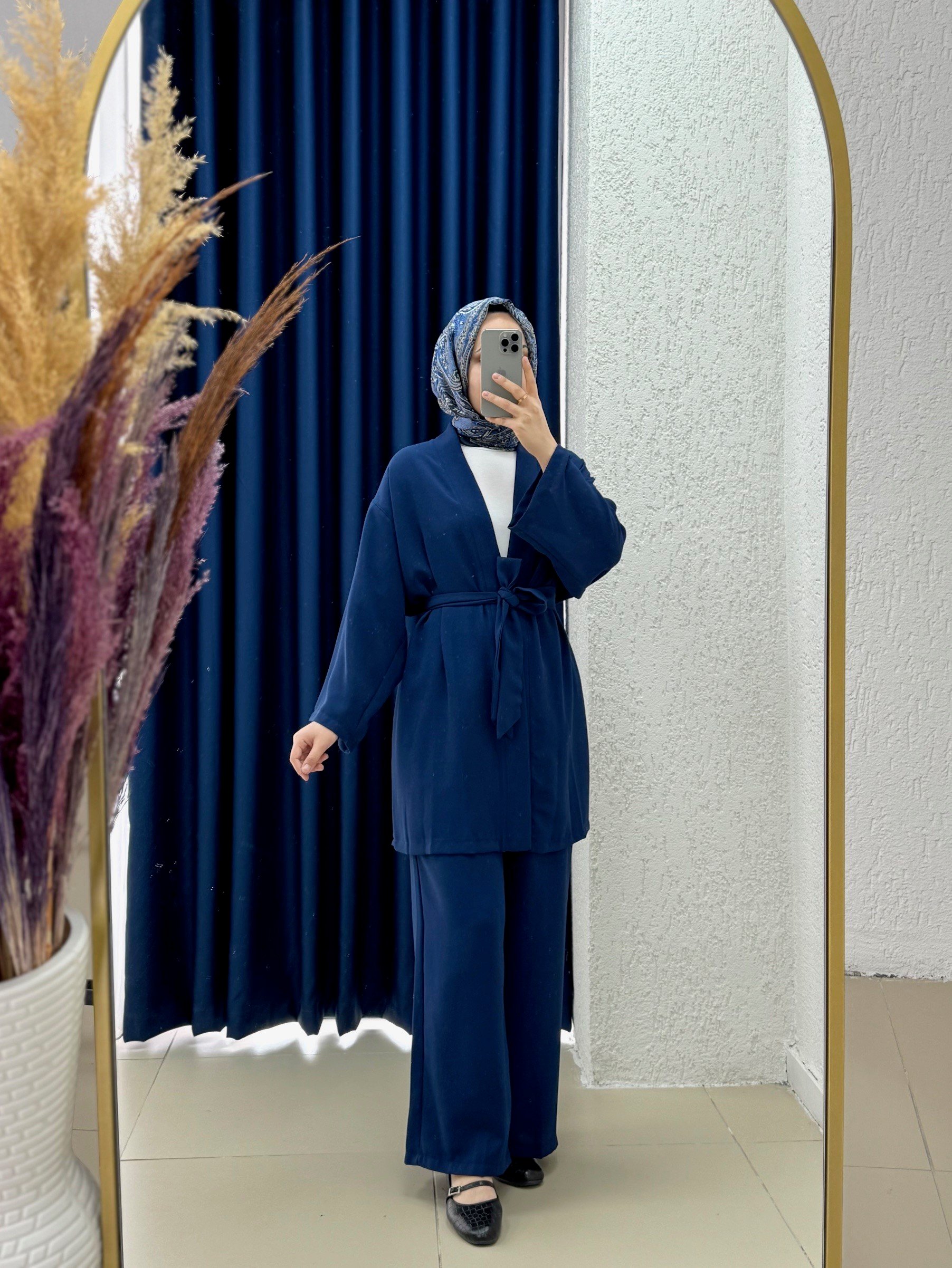Zenoria Kuşaklı Ceketli Salaş Pantolonlu Takım-NL434 Lacivert