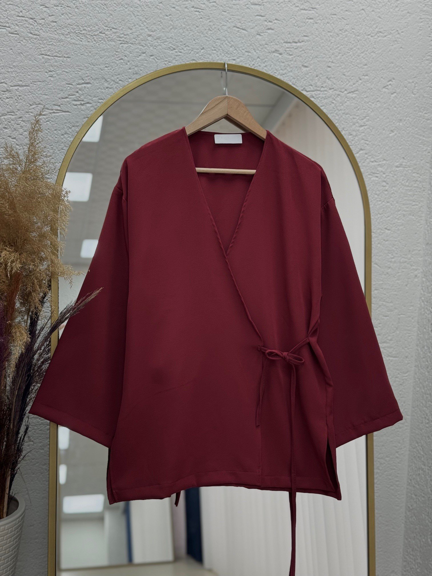 Zenyla Yan Bağlamalı Atlas Ceket-AS05814 Bordo