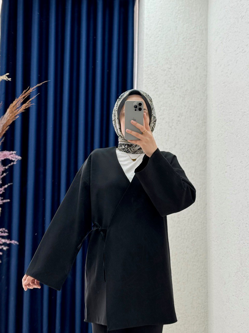 Zenyla Yan Bağlamalı Atlas Ceket-AS05814 Siyah
